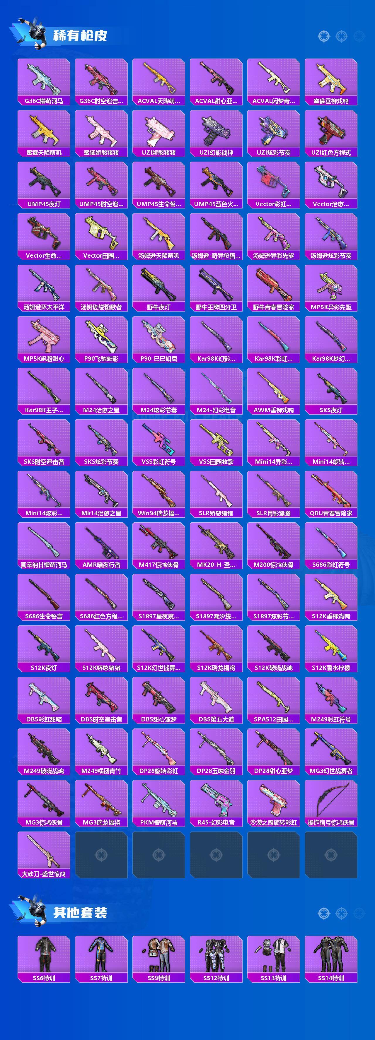 【粉色枪皮等级】:AUG-圣斗士星矢(四级),Kar98K-巳巳如意(五级),M24-翩跹演武(六级),M249-猪猪侠(七级)