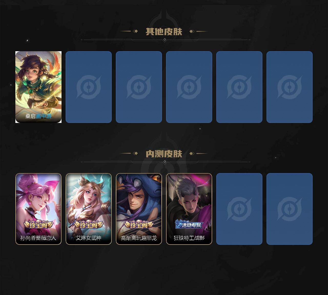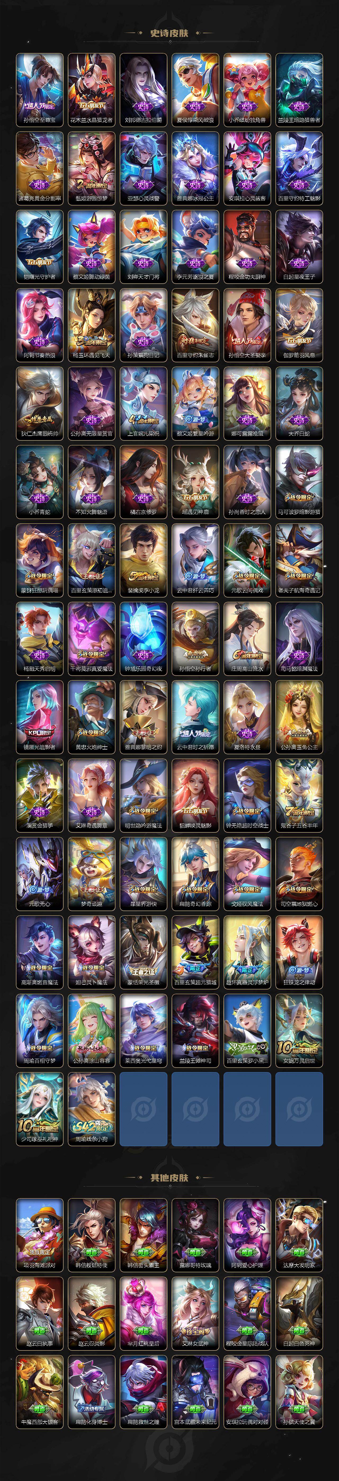 【限定皮肤】:虞姬夏日便利店,姜子牙天穹之誓,狄仁杰阴阳师,赵云皇家上将,墨子神迹
