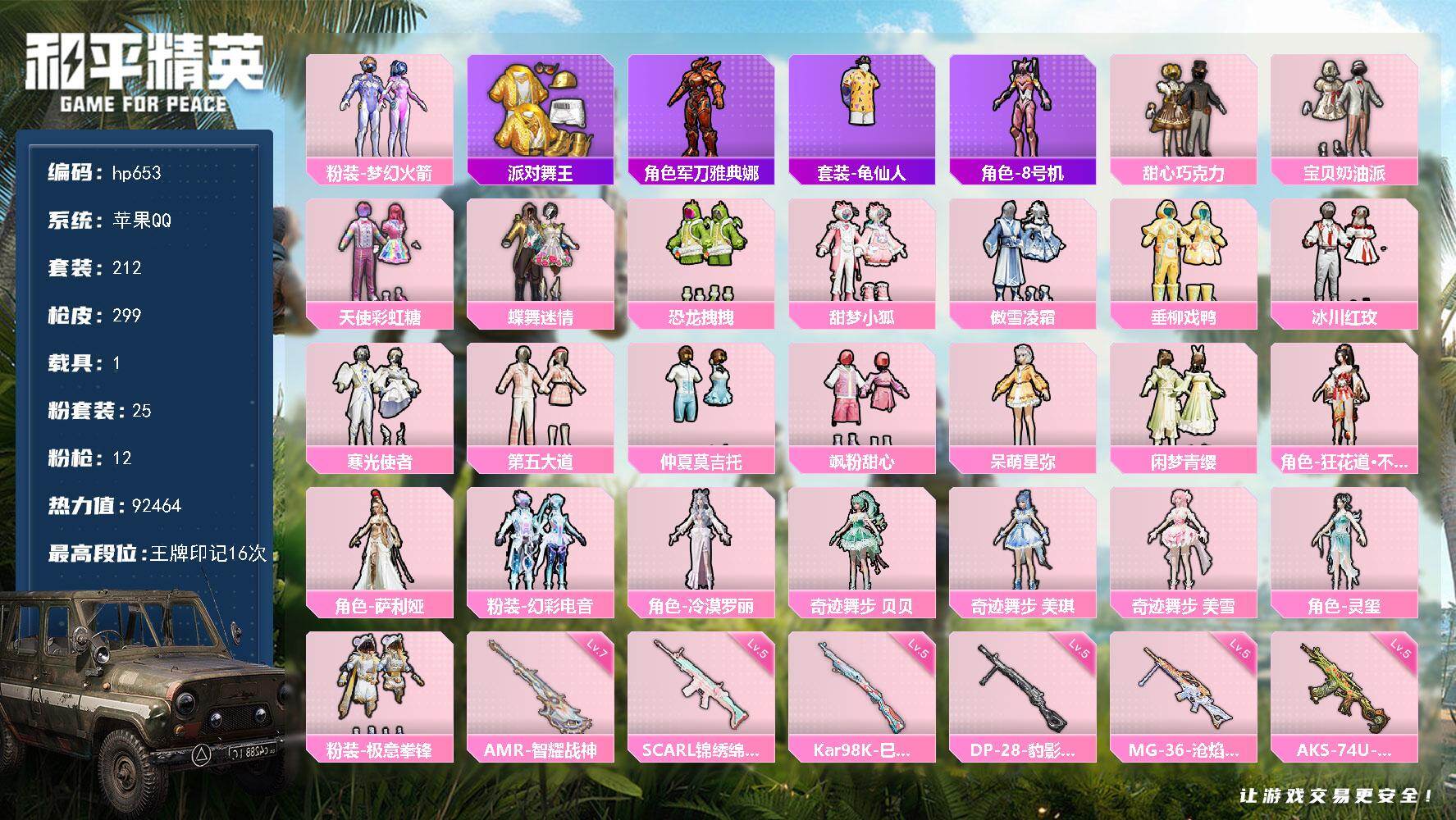 苹果 手Q-25粉装-12特效枪-1载具-4粉色飞行器-92
