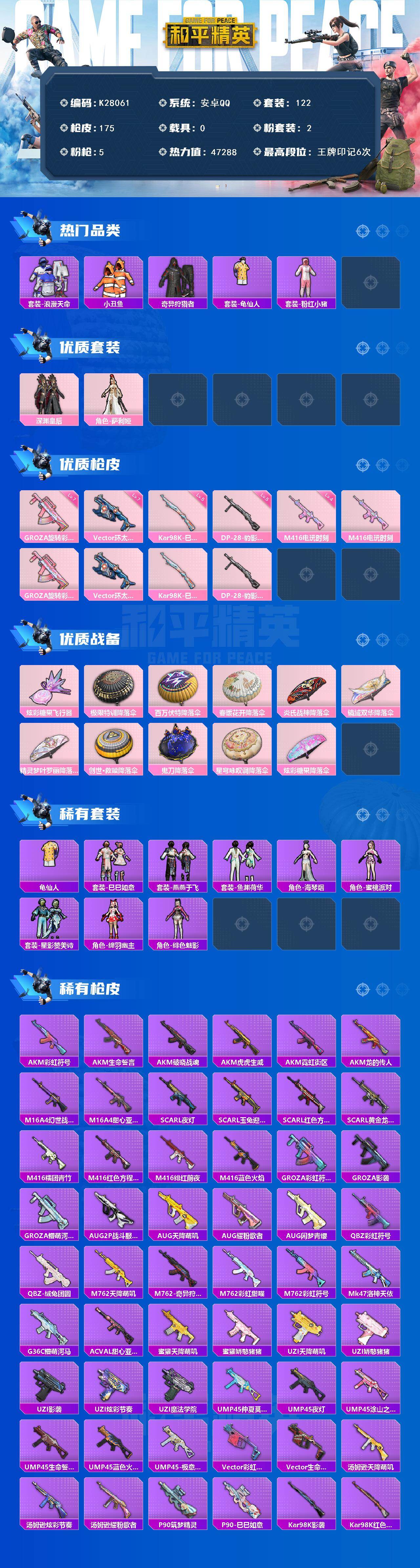 安卓 手Q-2粉装-5特效枪-0载具-1粉色飞行器-47288热力值-6王牌印记-122套装-175枪皮
