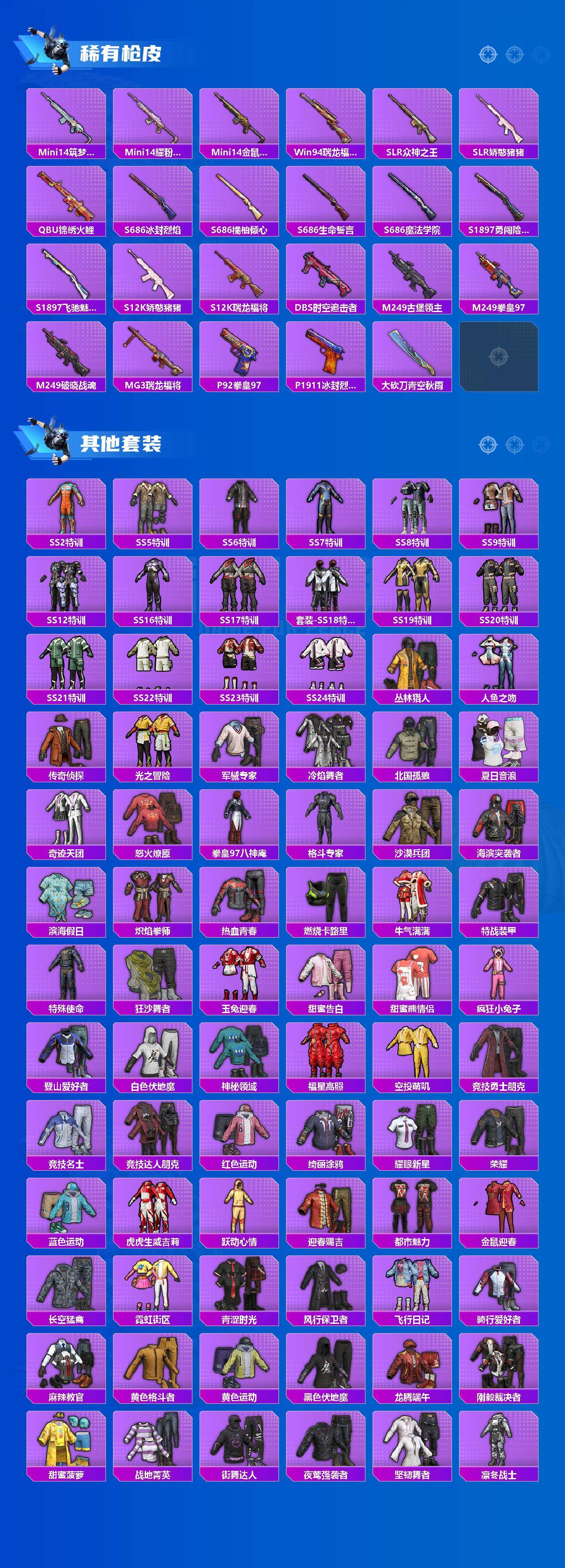 【粉色枪皮等级】:M416-风花雪月(六级),UZI-筑梦精灵(四级),M24-翩跹演武(二级),AWM-橘柚倾心(四级)