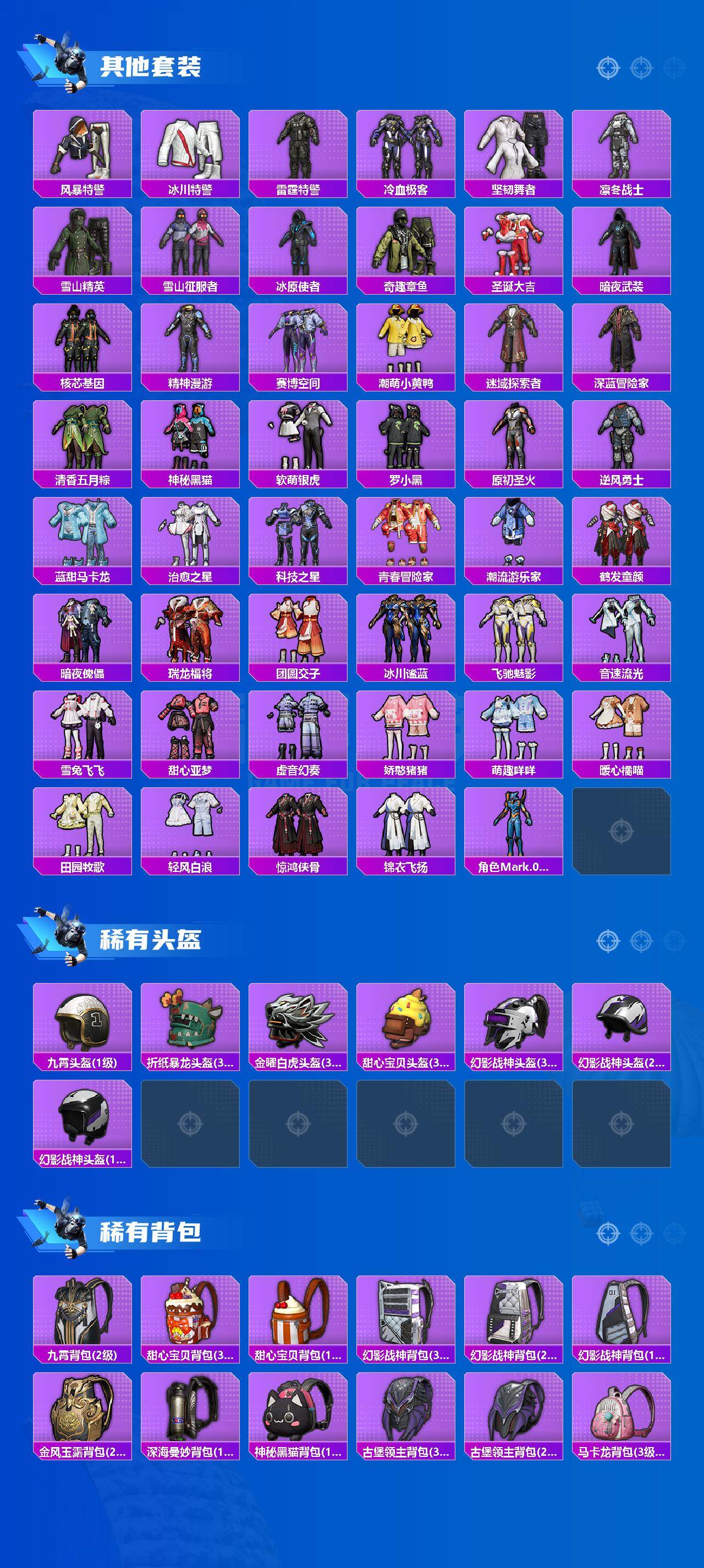 【热门品类】:套装-胖达团团,套装-忍者信条,套装-星河浪客,套装-SS1特训,套装-龟仙人,套装-潮萌小黄鸭,角色-Mark.06