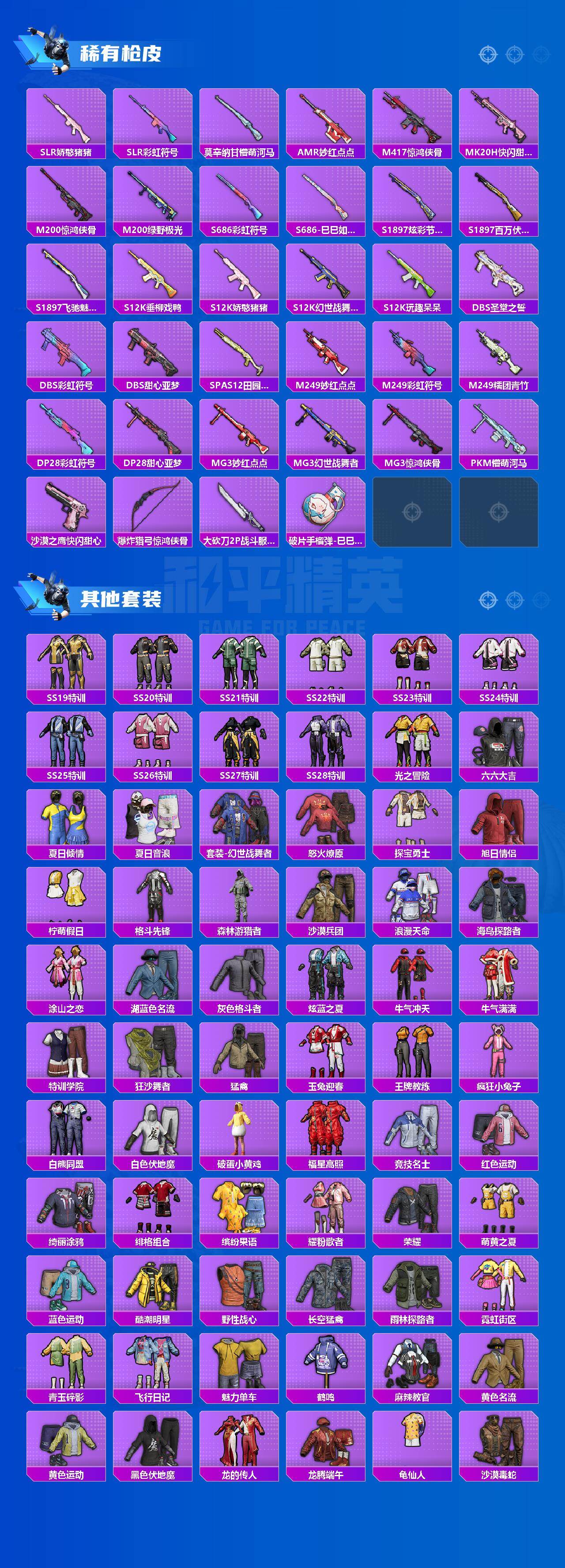 【粉色枪皮等级】:AKM-梦之光华(七级),M416-五爪金龙(七级),Kar98K-巳巳如意(五级)