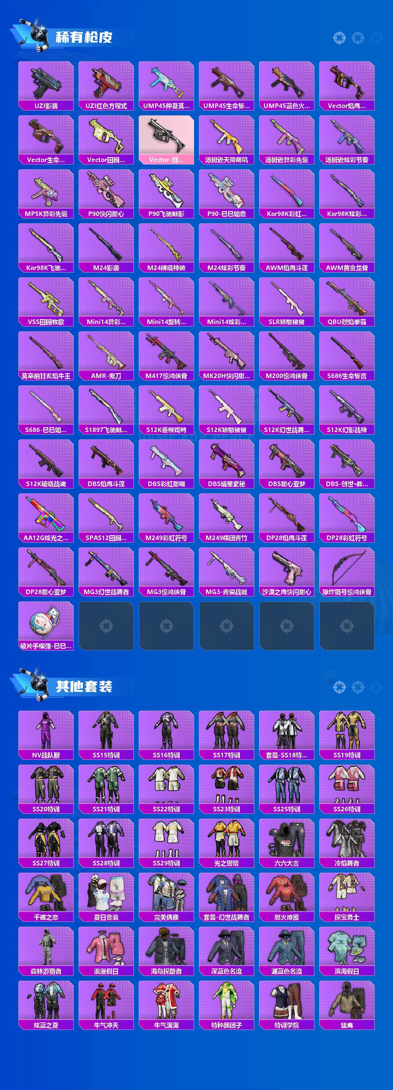 【粉色枪皮等级】:SCAR-L-青春物语(五级),M416-心之恋语(五级),M416-电玩时刻(五级),GROZA-旋转彩虹(七级),GROZA-镜光银凌(五级),AUG-暖羊咩咩
