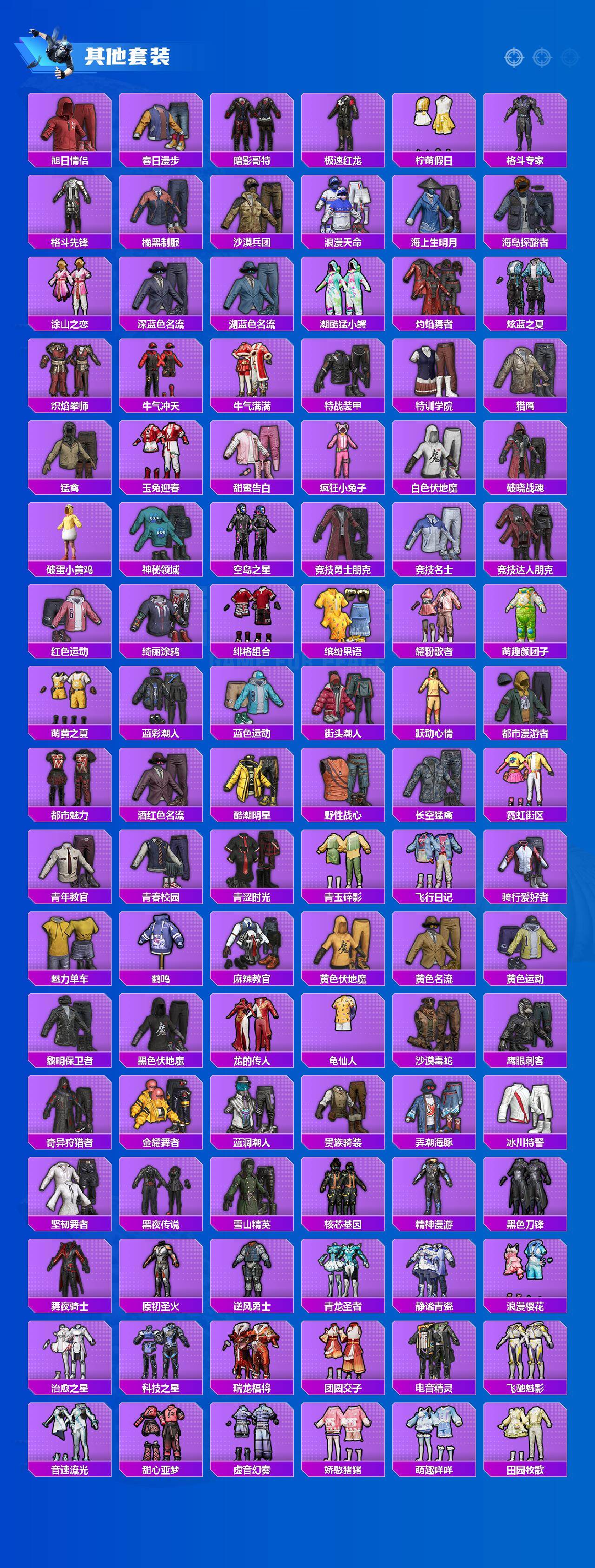 【粉色套装】:粉装-碧影闪光,粉装-闲梦青缨,粉装-暖暖奶龙,角色-烟云彩露,粉装-幻彩电音,角色-冷漠罗丽,粉装-极意拳锋