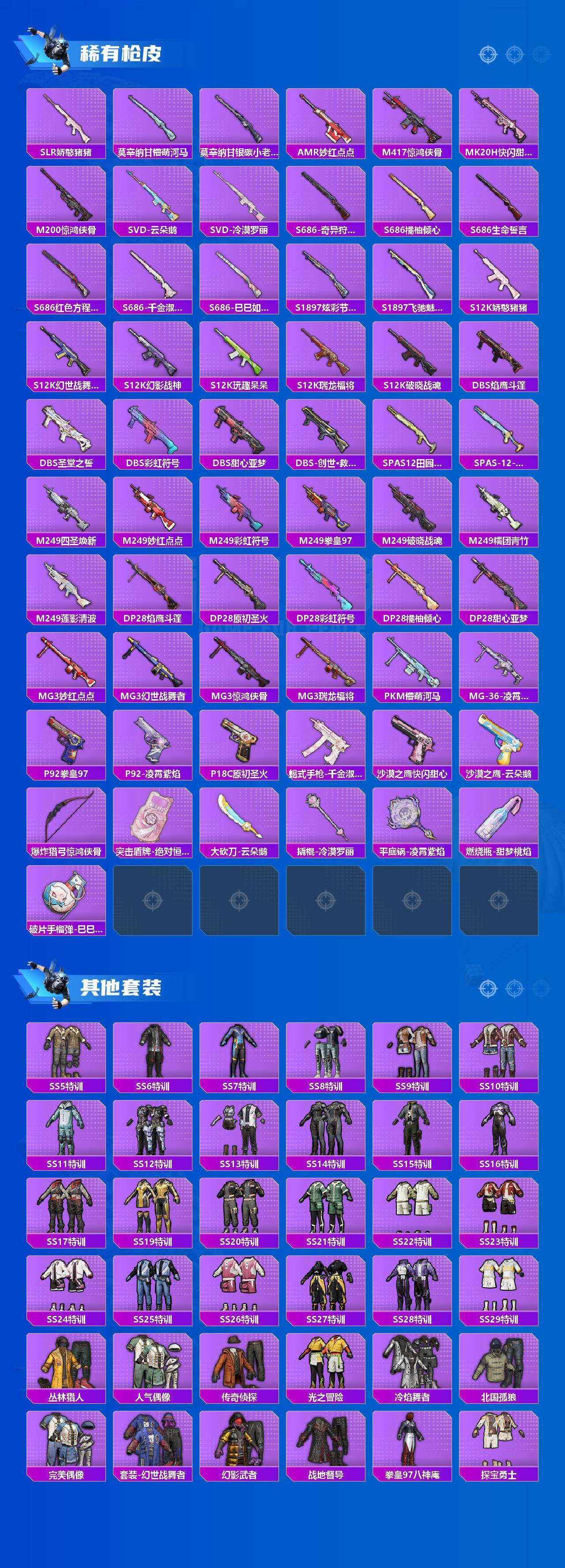 【粉色枪皮等级】:AKM-梦之光华(七级),SCAR-L-锦绣绵绵(五级),M416-心之恋语(七级),AUG-暖羊咩咩(五级),M762-电