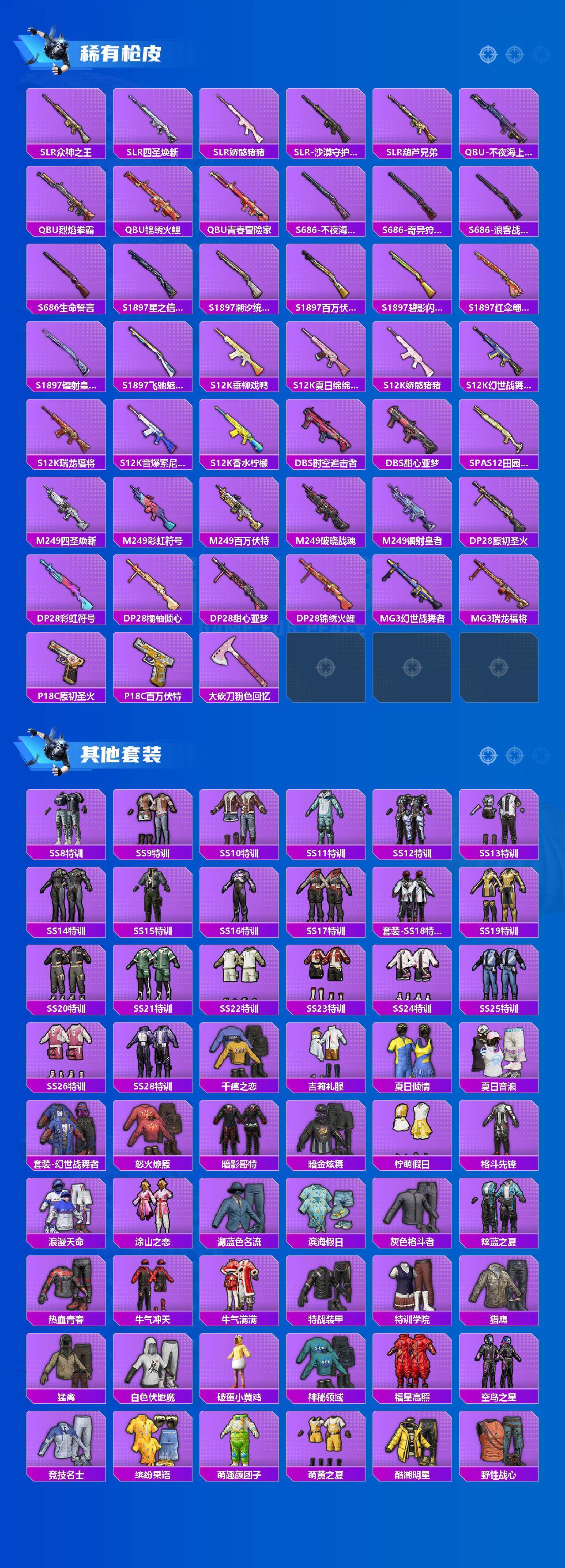 【热门品类】:粉装-梦幻火箭,套装-浪漫天命,套装-都市猎人,套装-小丑鱼,套装-奇异狩猎者,套装-胖达团团,套装-浪客战士,套装-龟仙人,套装-潮萌小黄鸭,套装-暗影哥特,套装-浪漫波比