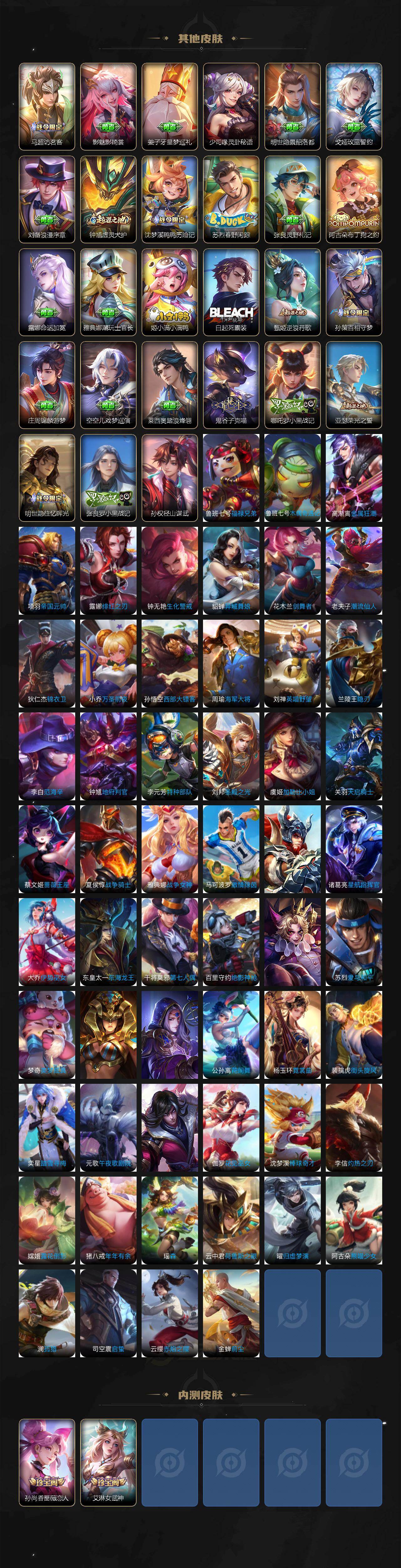 【英雄全皮】:孙权全皮,橘右京全皮,夏洛特全皮,金蝉全皮,空空儿全皮,影全皮