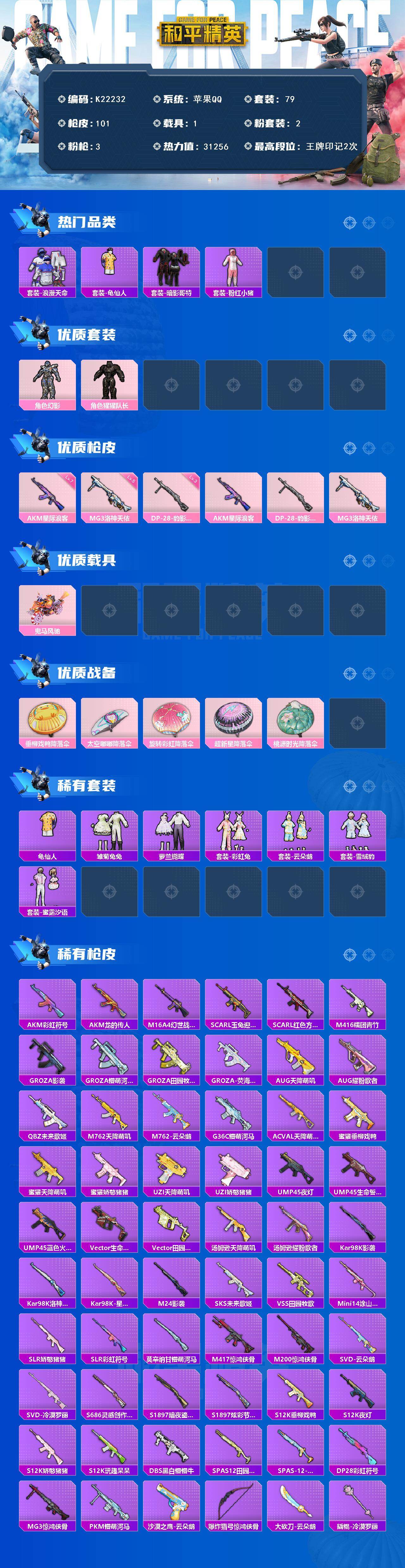 苹果 手Q-2粉装-3特效枪-1载具-0粉色飞行器-31256热力值-2王牌印记-79套装-101枪皮
