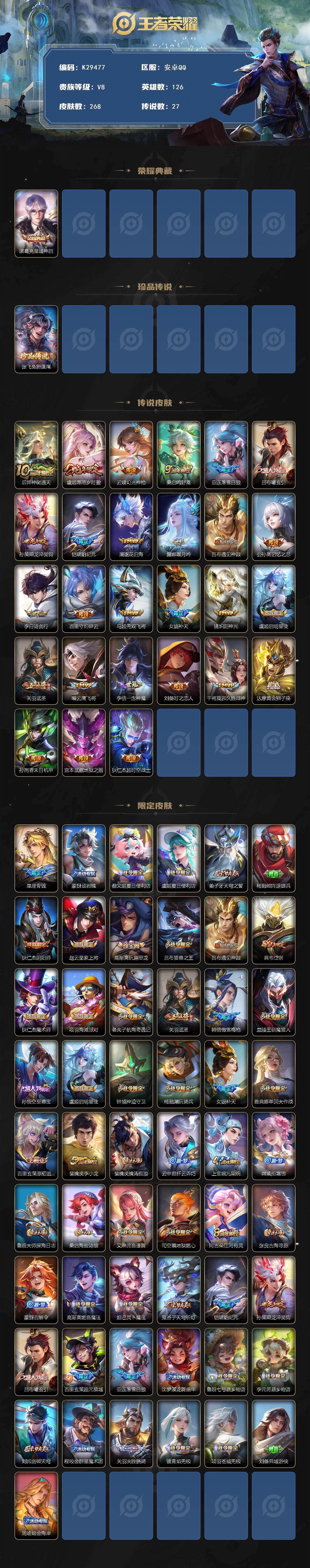 安卓Q-V8-最强王者段位-126英雄-268皮肤-1典藏皮肤-1珍品传说-27