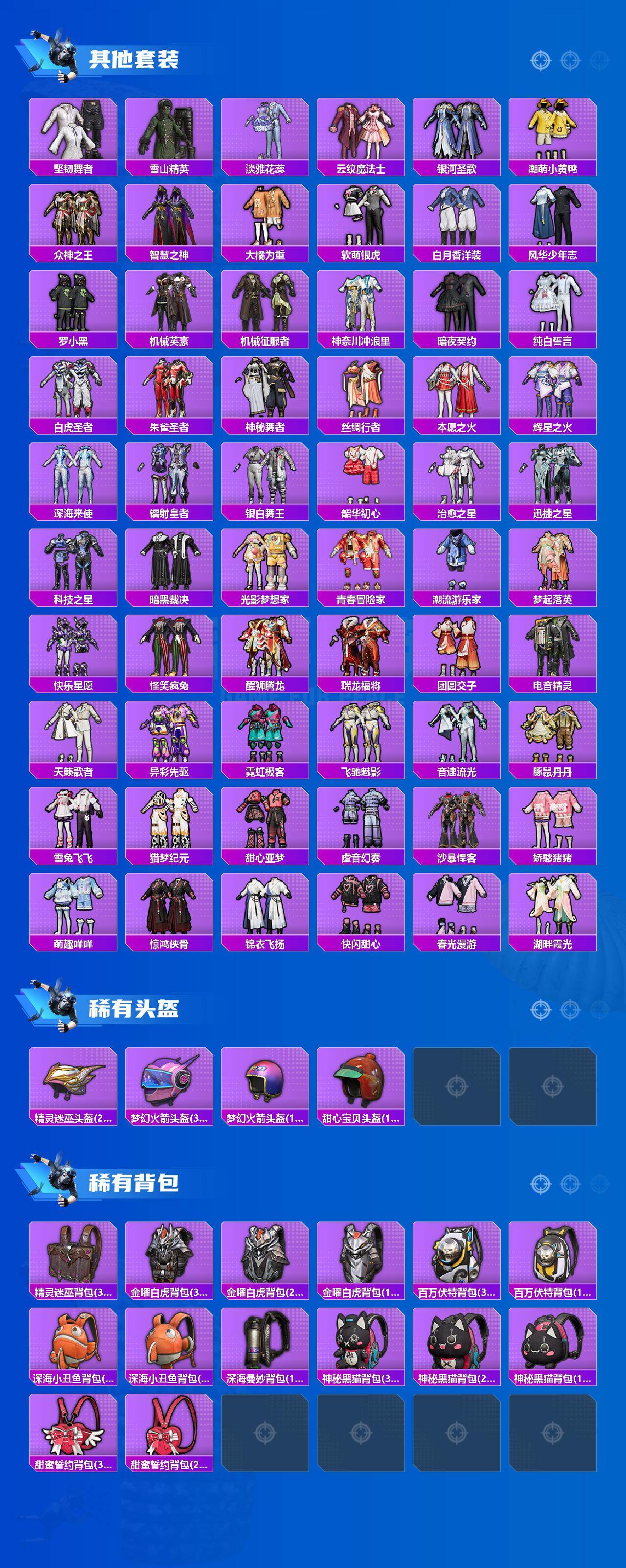 【粉色套装】:粉装-天使彩虹糖,粉装-木曜青龙,粉装-梦幻火箭,粉装-幻彩马卡龙,粉装-王牌四分卫,粉装-骨龙祭渊,粉装-吟月归客,粉装-碧影闪光,粉装-橘柚倾心