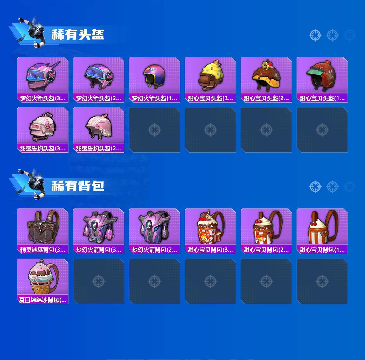 【粉色套装】:粉装-深海曼妙,粉装-宝贝奶油派,粉装-梦幻火箭,粉装-炙焰红王,粉装-蜜桃特工,粉装-碧影闪光,角色-小蓝,粉装-金丰海韵