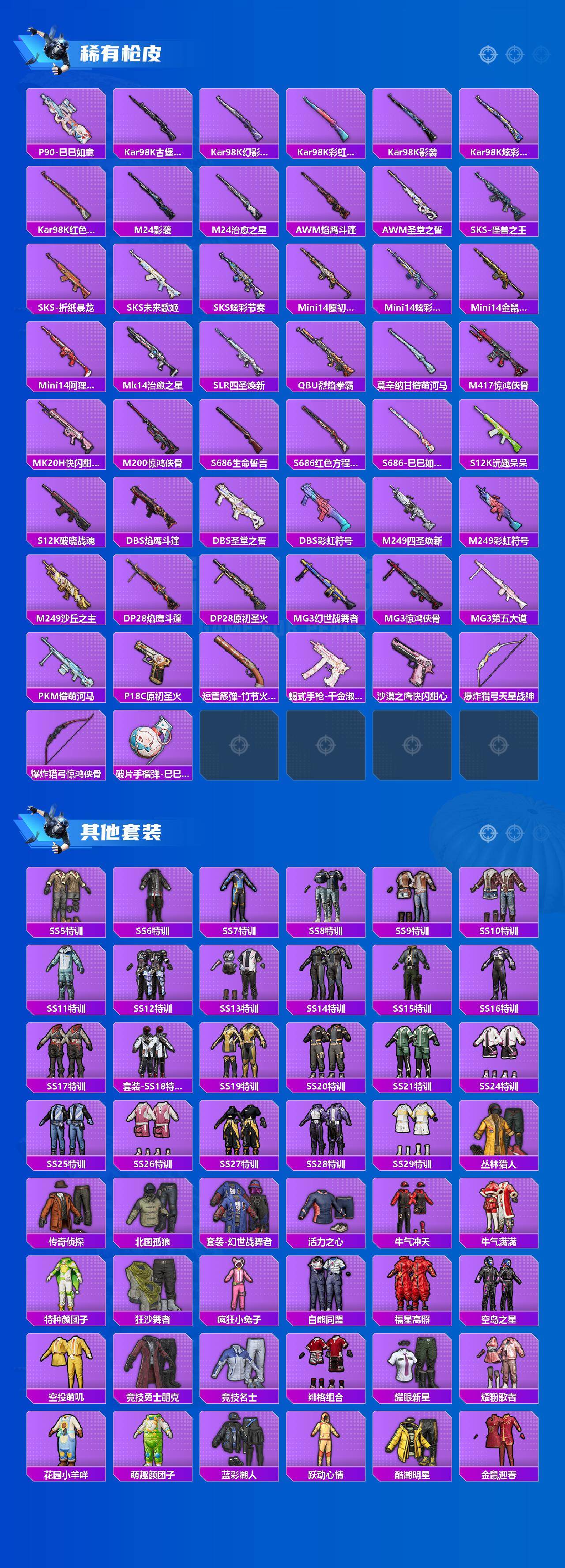 【粉色枪皮等级】:AKM-炫紫旋律(七级),SCAR-L-纯梦嫁纱(七级),M416-风花雪月(七级),Kar98K-巳巳如意(四级)