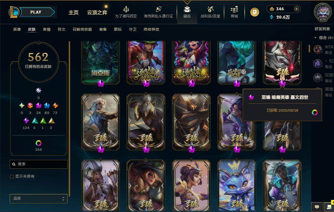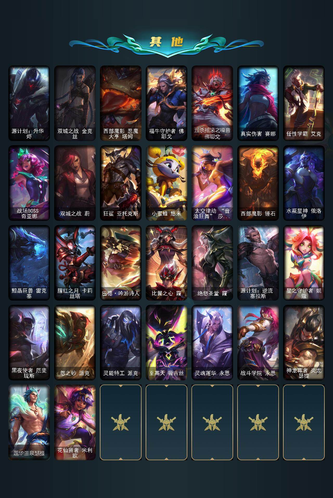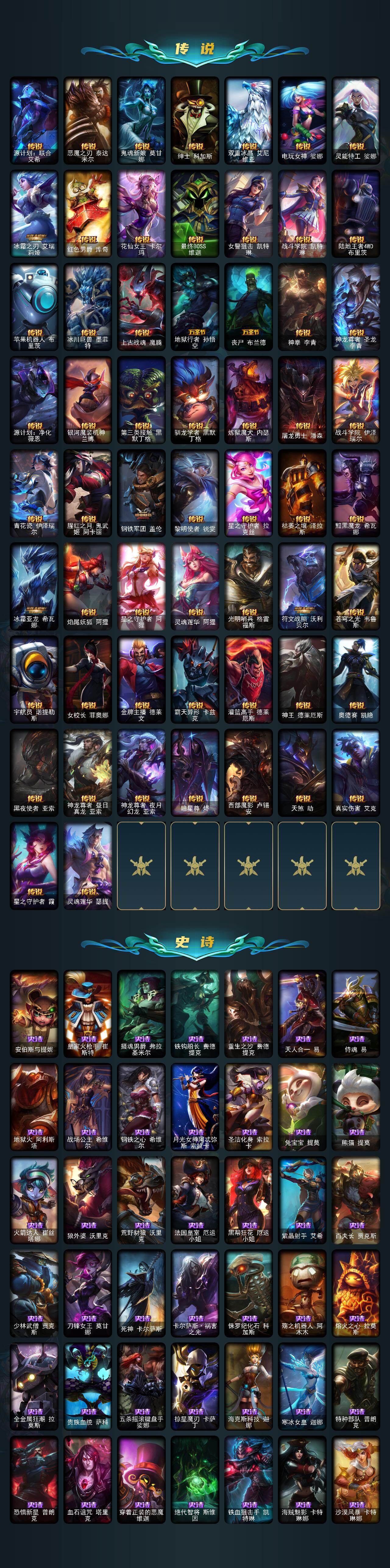 未定级段位-172英雄-562皮肤-216炫彩-3终极-24神话-89限定-72传说-124史诗