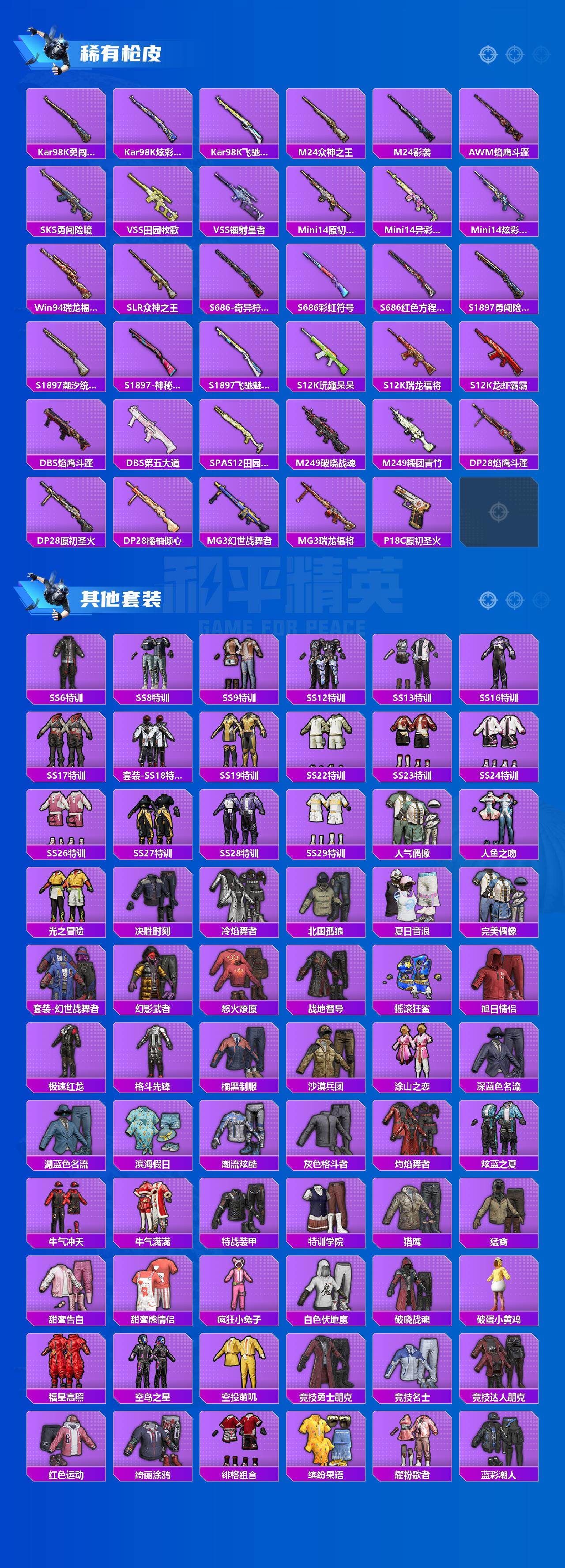 【粉色枪皮等级】:AKM-炫紫旋律(七级),AUG-暖羊咩咩(五级),Kar98K-巳巳如意(四级),DP-28-豹影疾电(一级)