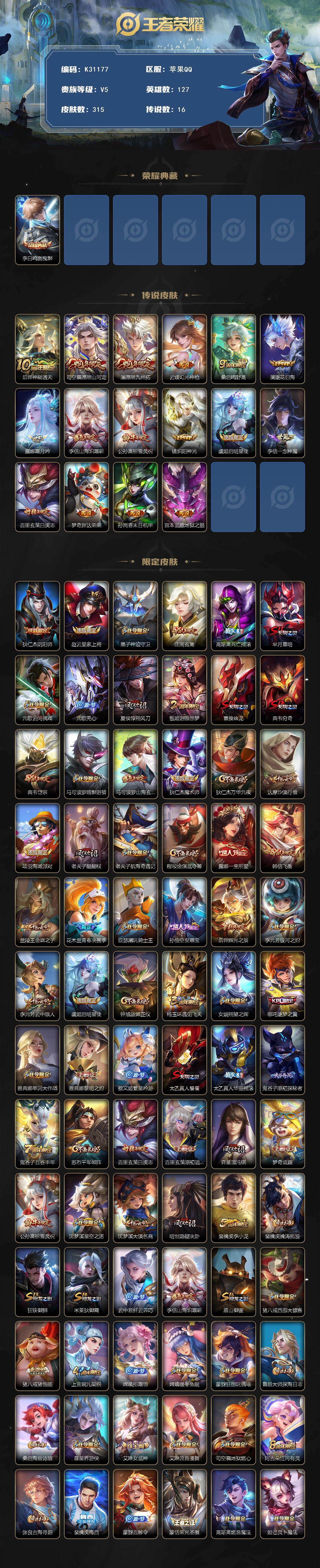 苹果Q-V5-至尊星耀IV段位-127英雄-315皮肤-1典藏皮肤-16传说-8