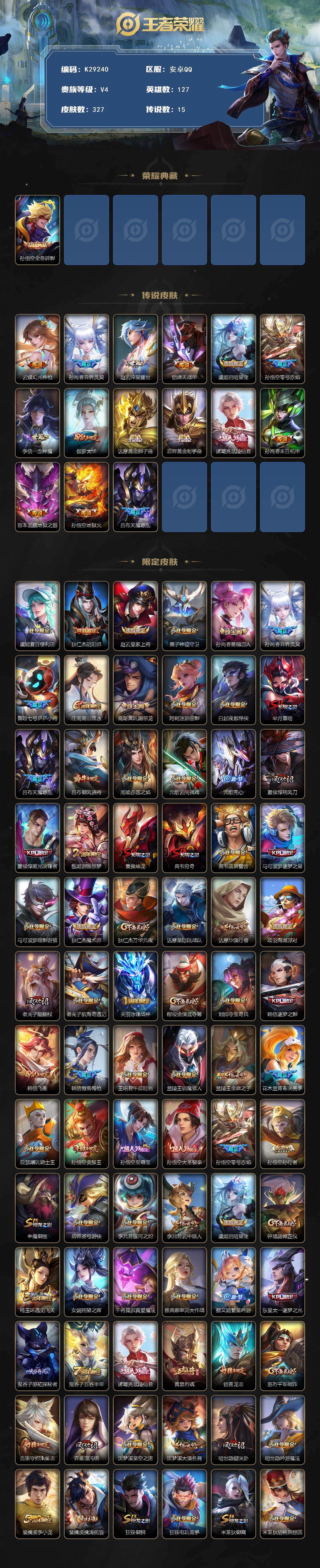 安卓Q-V4-至尊星耀V段位-127英雄-327皮肤-1典藏皮肤-15传说-97史诗