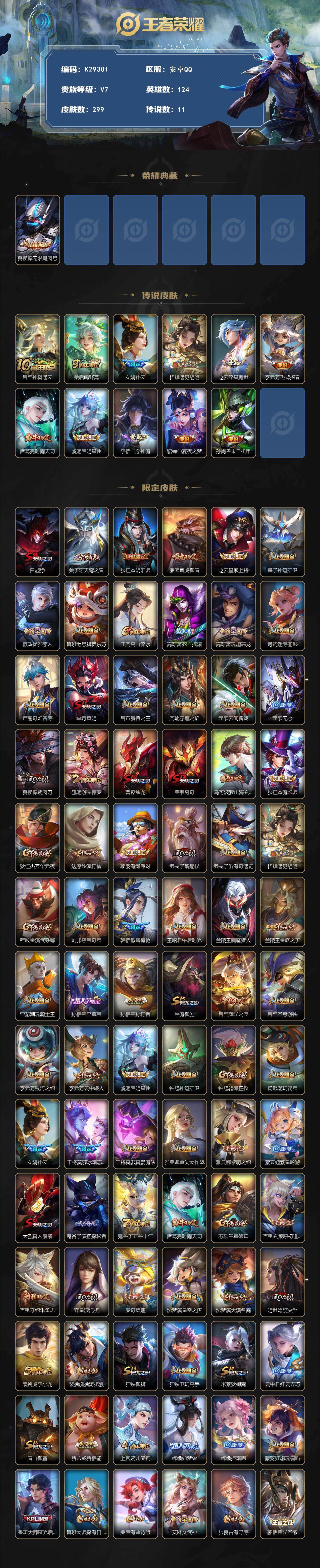 安卓Q-V7-至尊星耀III段位-124英雄-299皮肤-1典藏皮肤-11传说-