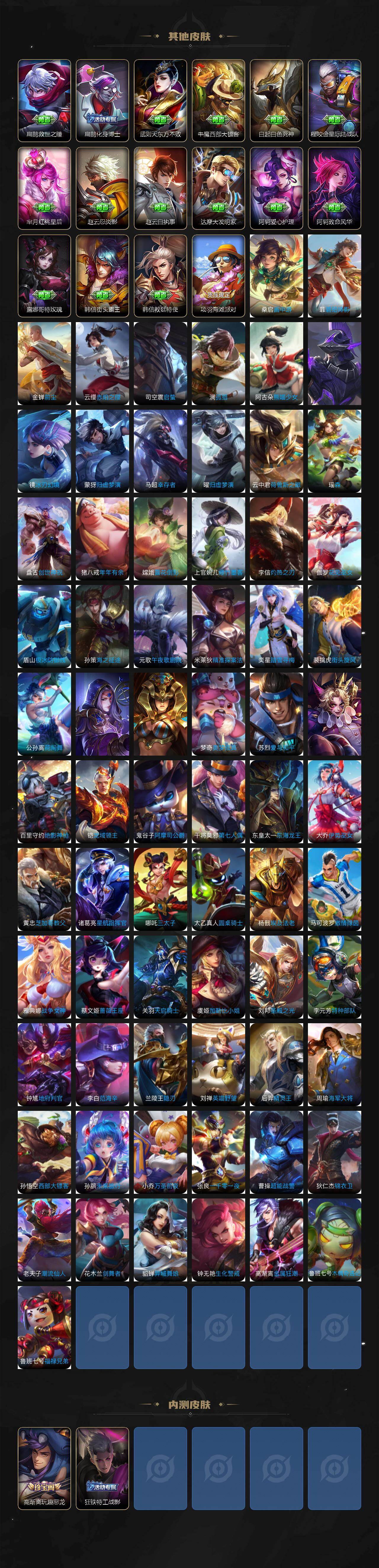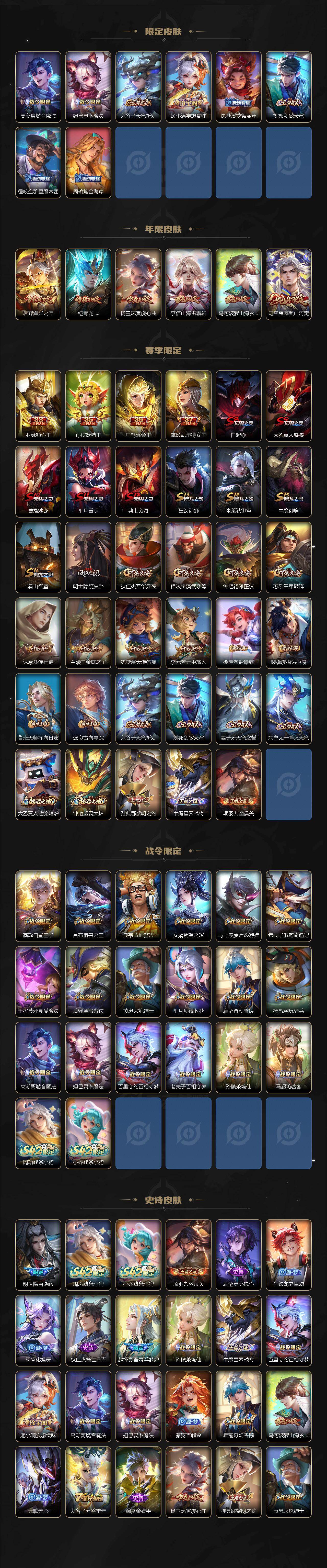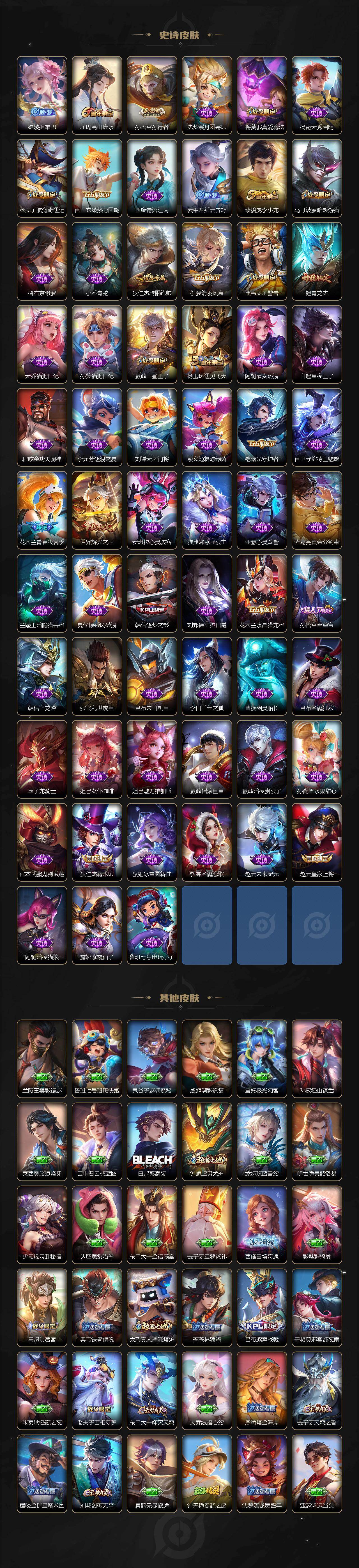 苹果Q-V8-最强王者段位-128英雄-332皮肤-2典藏皮肤-1无双-1珍品传说-18传说-85史诗