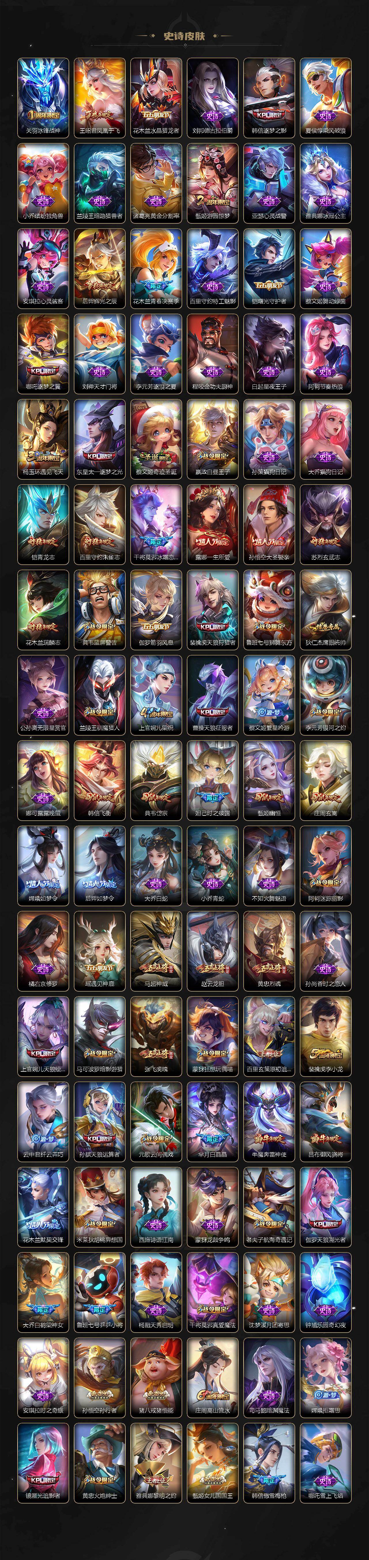 【传说皮肤】:桑启鸣野蒿,艾琳觅芳踪,东皇太一灼幽烈阳,澜电玩雷克斯,张飞百相守梦,孙悟空齐天大圣,小乔山海琳琅生,曜山海苍雷引,李信山海炽霜斩,吕布怒海麟威,李白诗剑行,狄仁杰神器狴