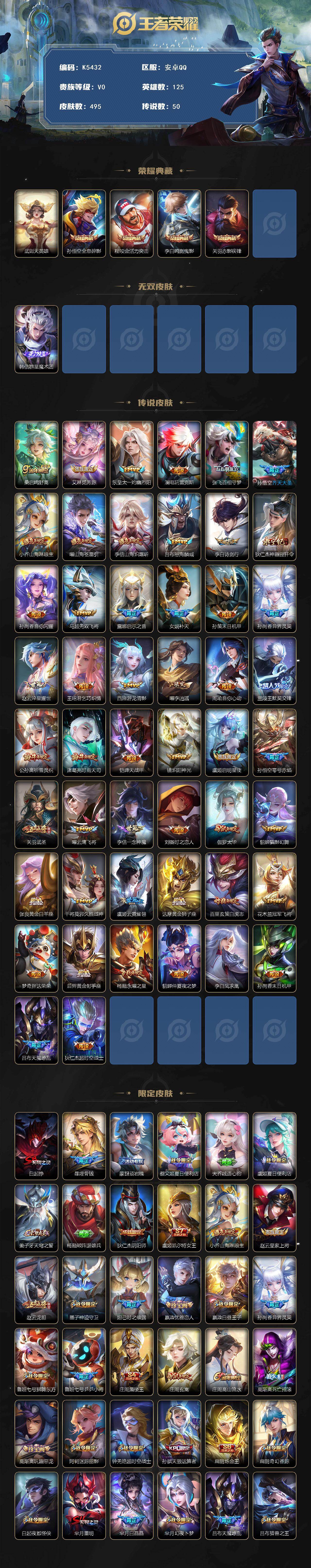 V0-最强王者段位-125英雄-495皮肤-4典藏皮肤-1典藏英雄