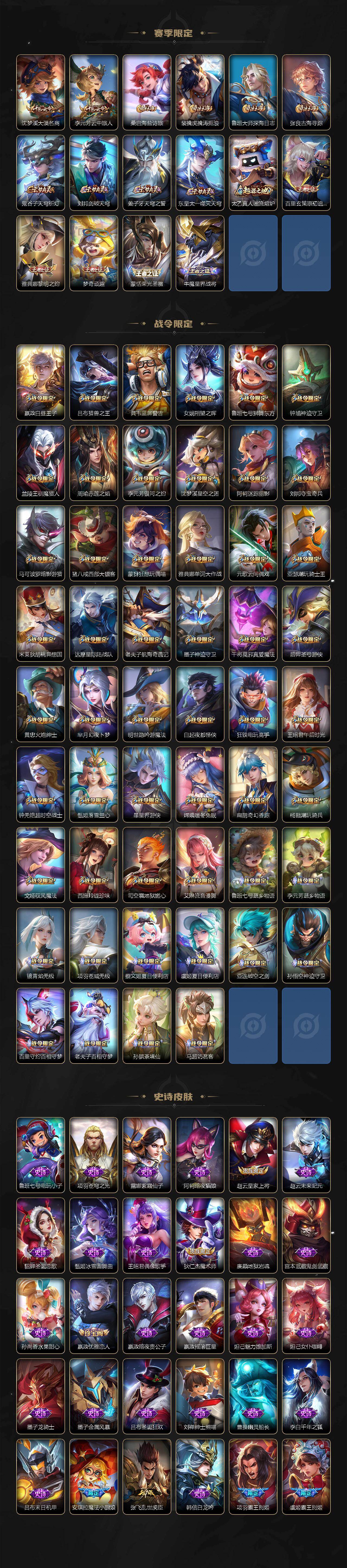 安卓Q-V0-最强王者段位-125英雄-495皮肤-4典藏皮肤-1典藏英雄-1无双-50传说-179史诗
