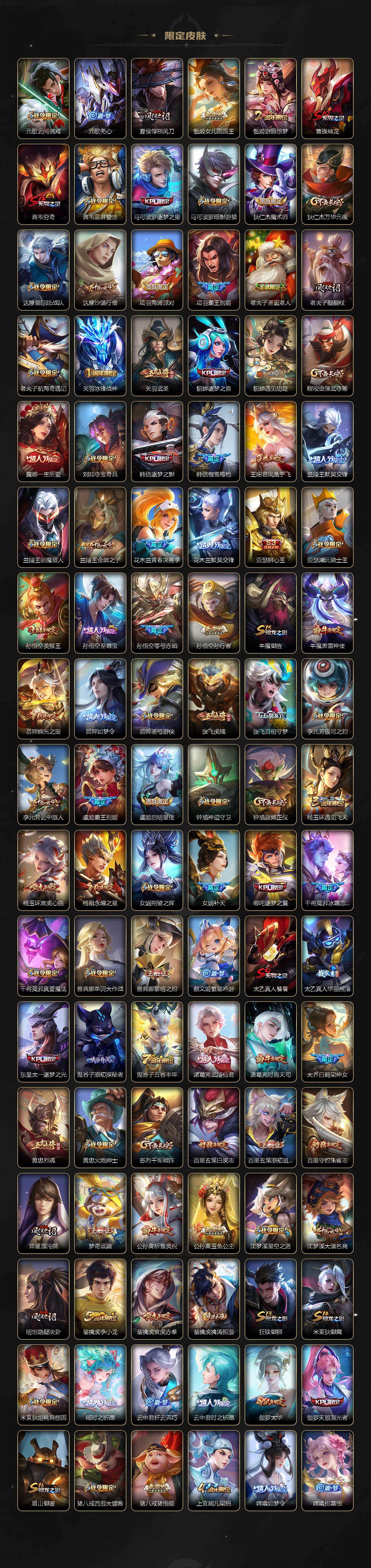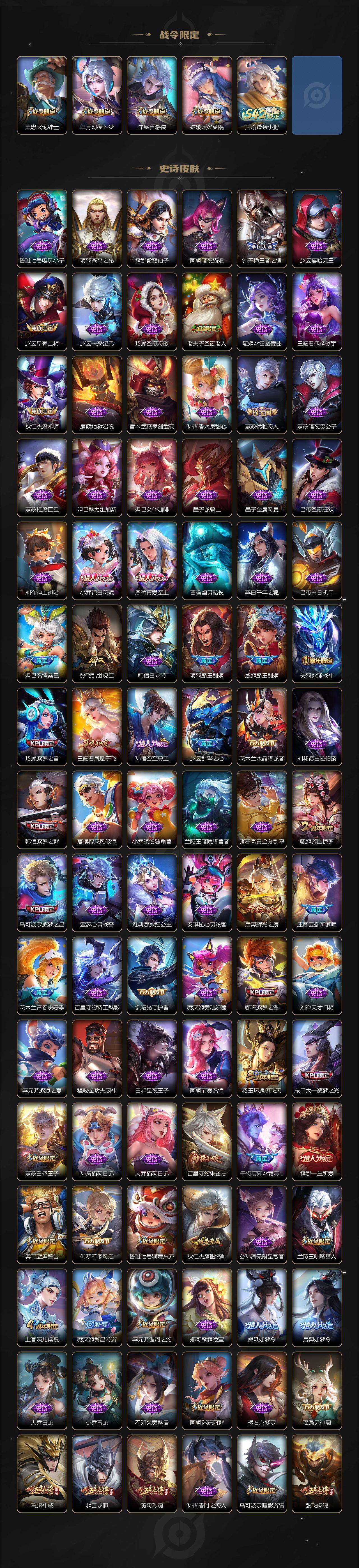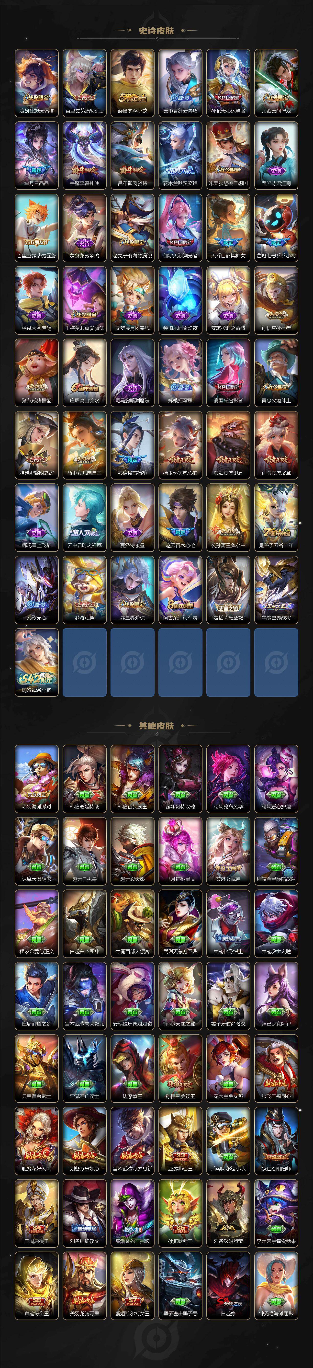 【荣耀典藏】:武则天英雄,孙悟空全息碎影,武则天倪克斯神谕,夏侯惇无限飓风号,小乔天鹅之梦,孙尚香杀手不太冷,鲁班七号星空梦想,芈月大秦宣太后,李白鸣剑曳影,诸葛亮星域神启