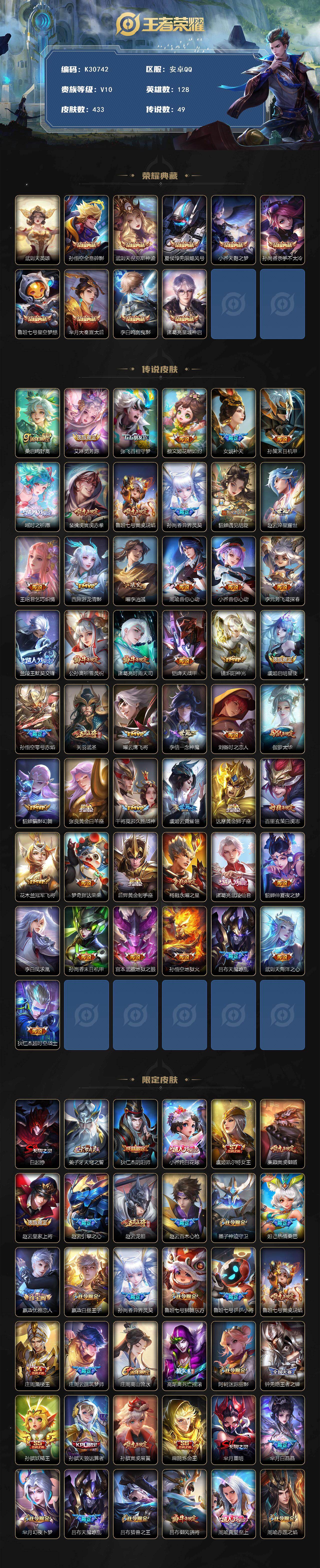 V10-尊贵铂金I段位-128英雄-433皮肤-9典藏皮肤-1典藏英雄-