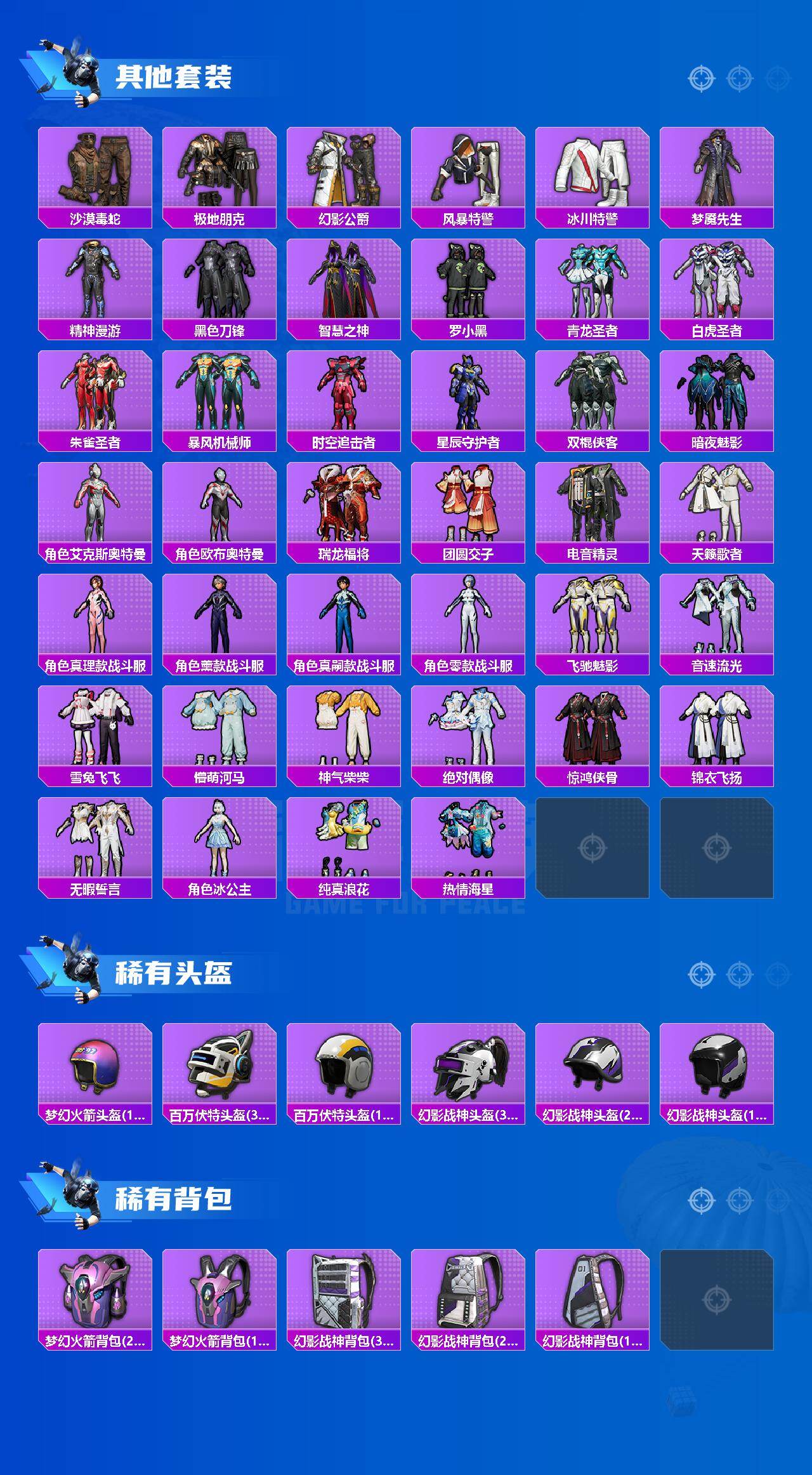 【粉色套装】:粉装-数码大师,粉装-新星烈龙,粉装-绿野柔风,粉装-炙焰赤龙,粉装-沙场疾风,粉装-吟月归客,角色-2号机款机体服,角色-圣堂之誓,角色-千金淑猫
