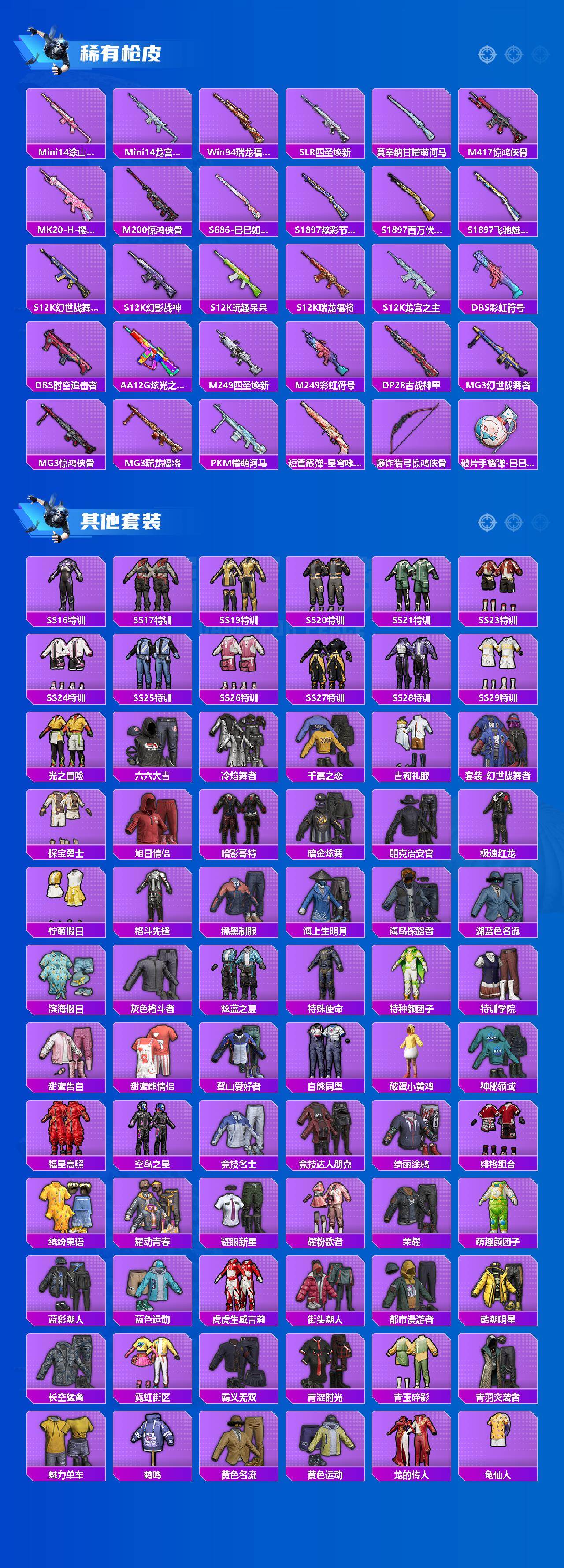 【粉色枪皮等级】:M16A4-葫芦兄弟(四级),M416-风花雪月(七级),UMP45-雪国精灵(七级),Kar98K-巳巳如意(五级),DP-28-豹影疾
