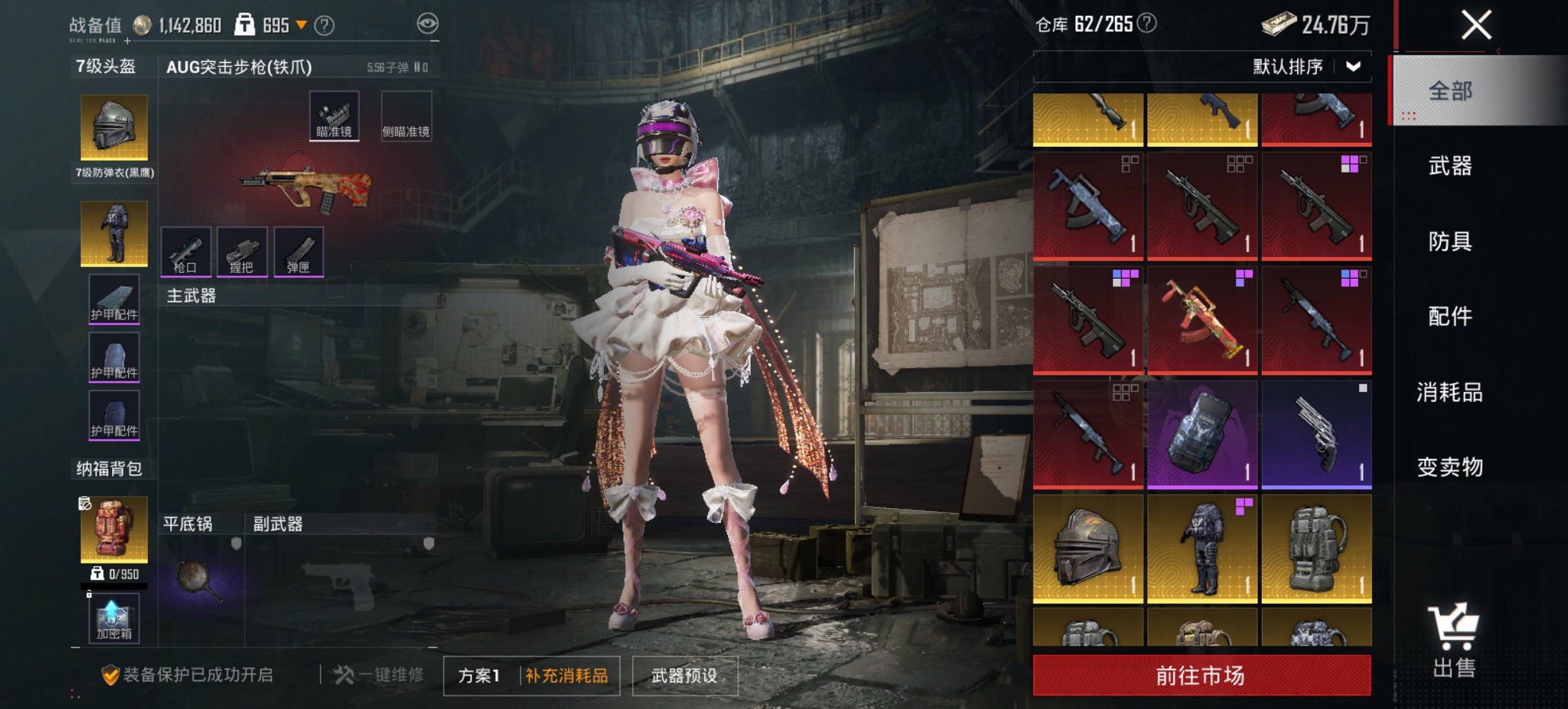 【金鞋都市男神10特效枪7粉装2载具】 安卓V区-89319热力值-225套装-295枪皮 【2载具】 星梦玉骢 宝马M4(圣保罗黄)【4稀有】 都市猎人 派对舞王(金靴子) 派对舞王 Mark.06蓝螳螂【7粉装】 复仇流浪者 炫光之旅 暗夜鎏金 角色-月下星之子 星穹咏叹调 角色-守护天翼 角色-千金淑猫【10特效枪】 AKS-74U-森灵之息(4级) Mk14-福马献瑞(5级) UMP45-萌骑冒险(2级) M249-绝对恒星(5级) DP-28-暗夜鎏金(7级) AUG-星之彼岸(3级)