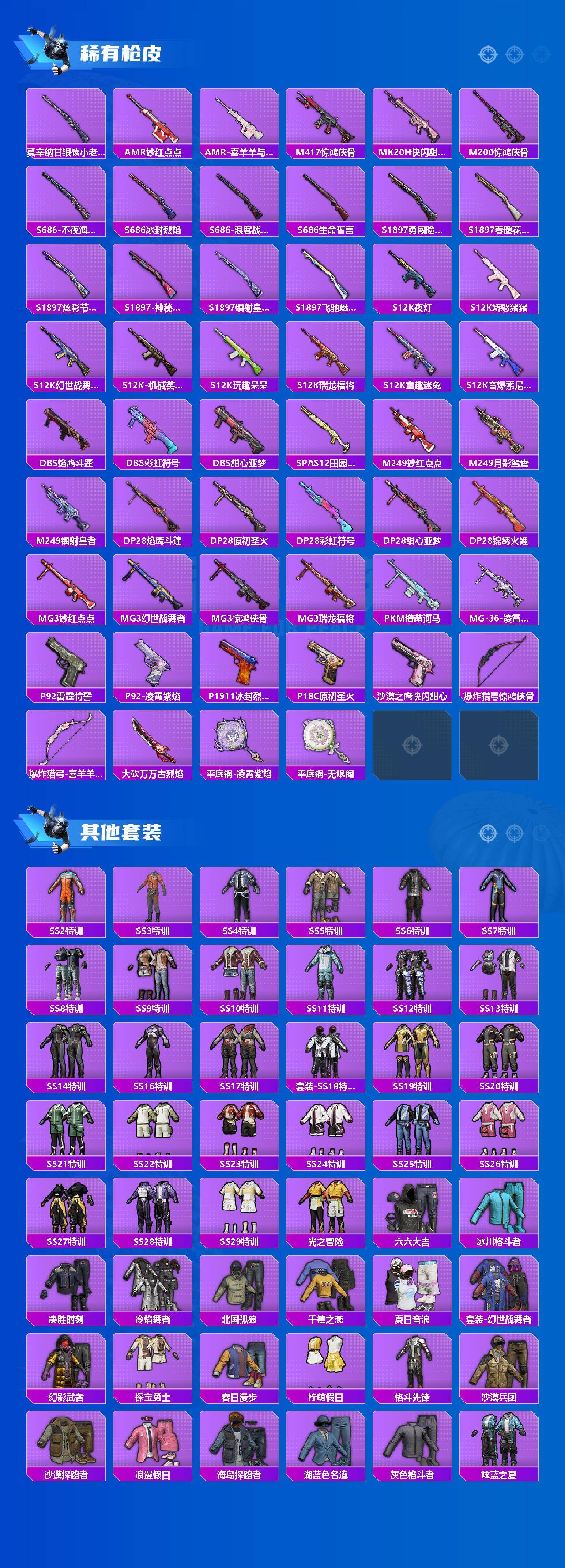 【粉色枪皮等级】:AKM-星际浪客(七级),SCAR-L-青春物语(五级),M416-心之恋语(七级),M762-青锋波束(五级),UMP45-恐龙拽拽(五级),DP