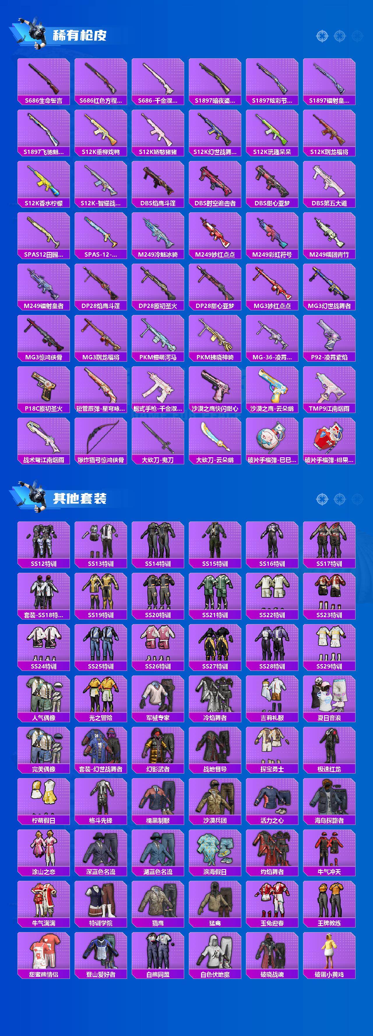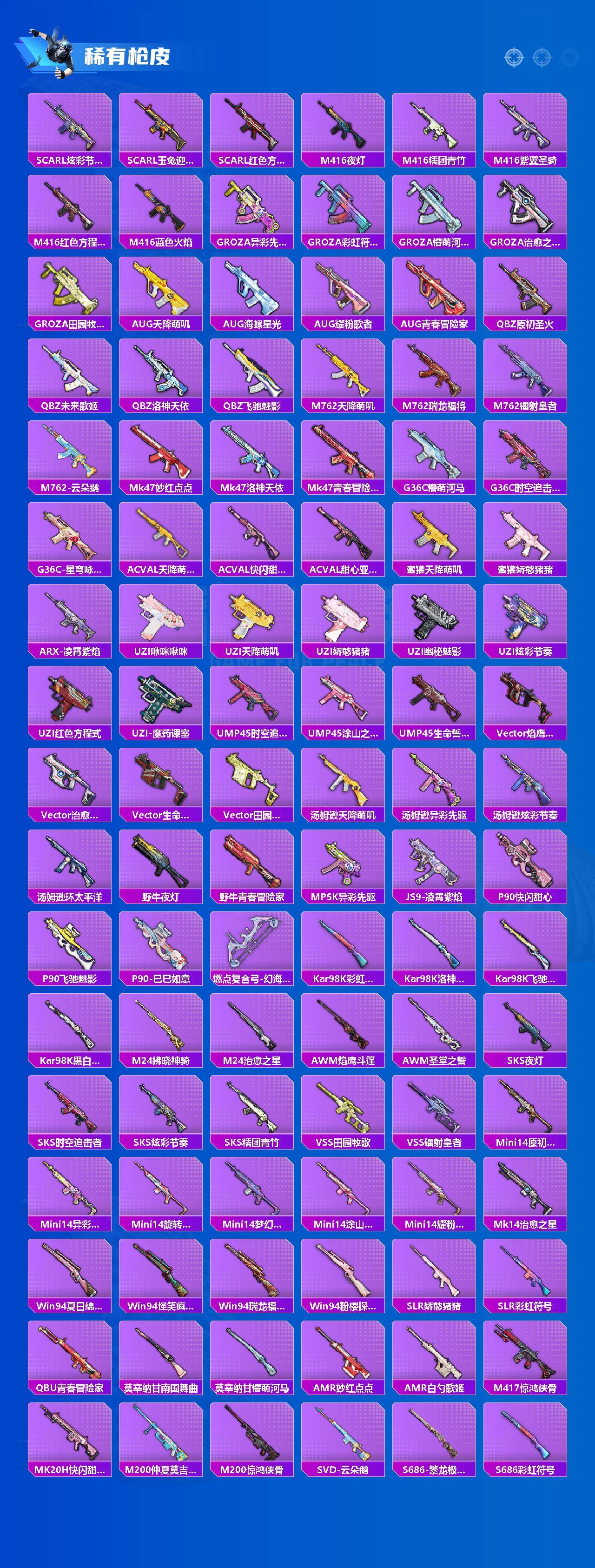 【粉色枪皮等级】:SCAR-L-锦绣绵绵(五级),M416-电玩时刻(五级),UZI-筑梦精灵(七级),Kar98K-巳巳如意(五级),Ka