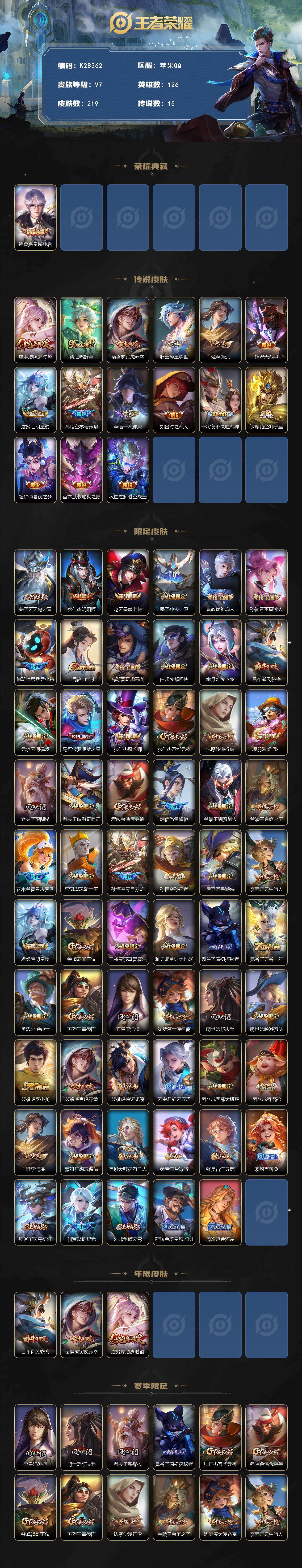 V7-永恒钻石I段位-126英雄-219皮肤-1典藏皮肤-15传说-
