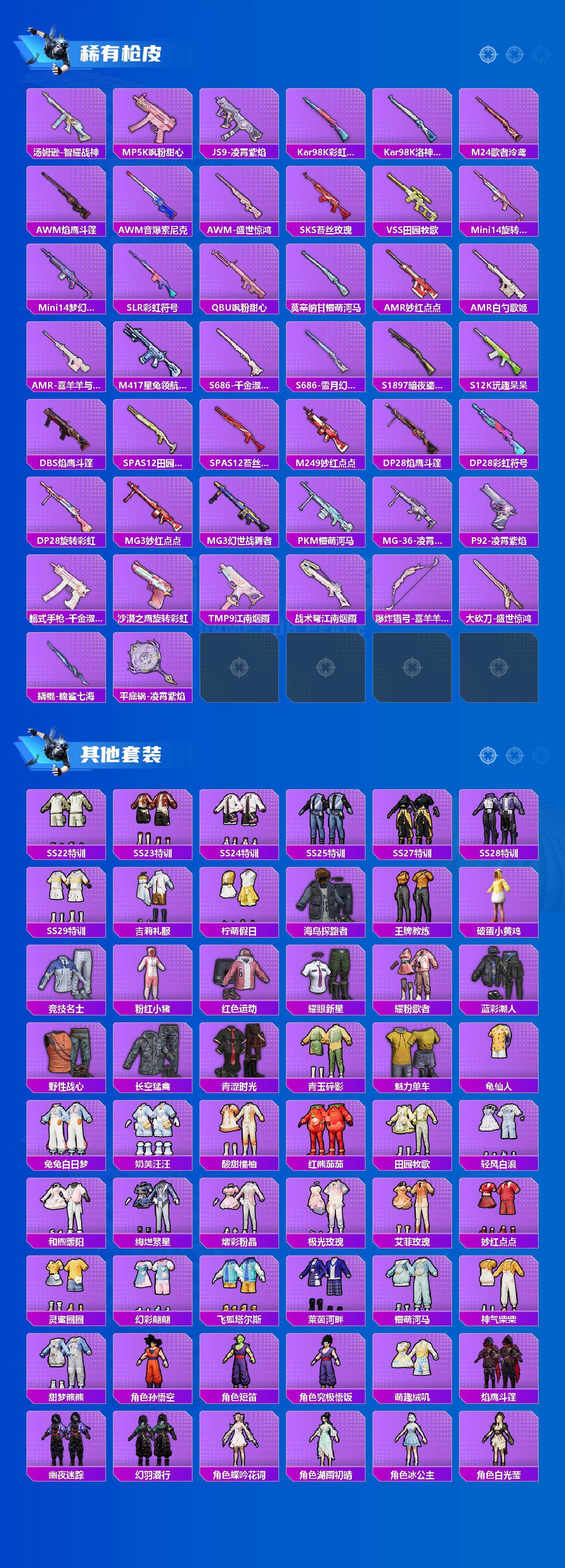 【粉色枪皮等级】:M416-五爪金龙(七级),P90-金丰海韵(七级),Kar98K-巳巳如意(五级),DP-28-暗夜鎏金(一级),DP-2