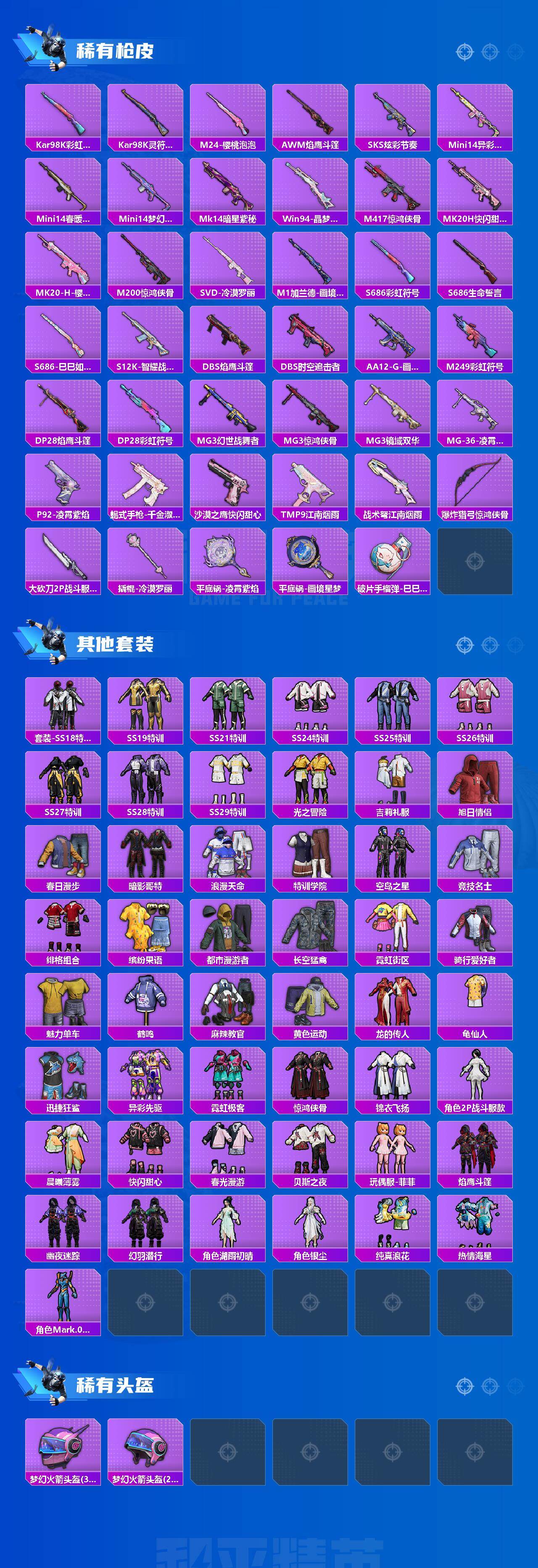 【粉色枪皮等级】:M416-风花雪月(七级),Kar98K-巳巳如意(五级),AMR-智耀战神(七级),DP-28-豹影疾电(五级),PKM-江南烟