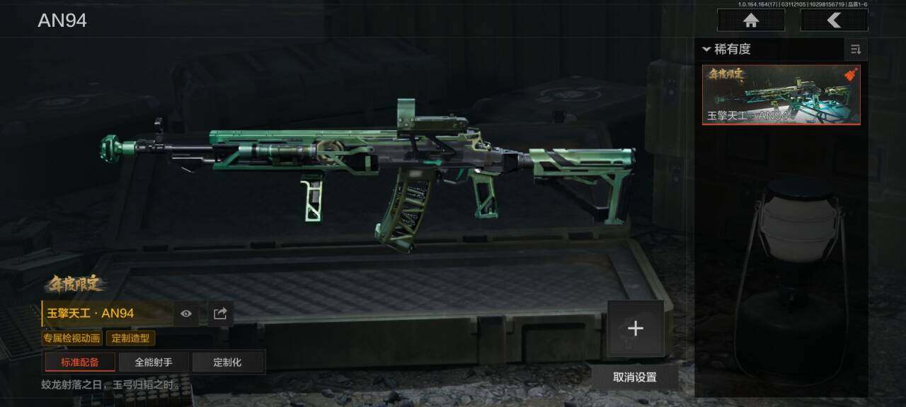 【AQQH797】段位:大师/仓库价值(百万):86/幽燕钛玄/工兵铲/来战开山刀/玉擎天工AN94/玉擎天工MP5