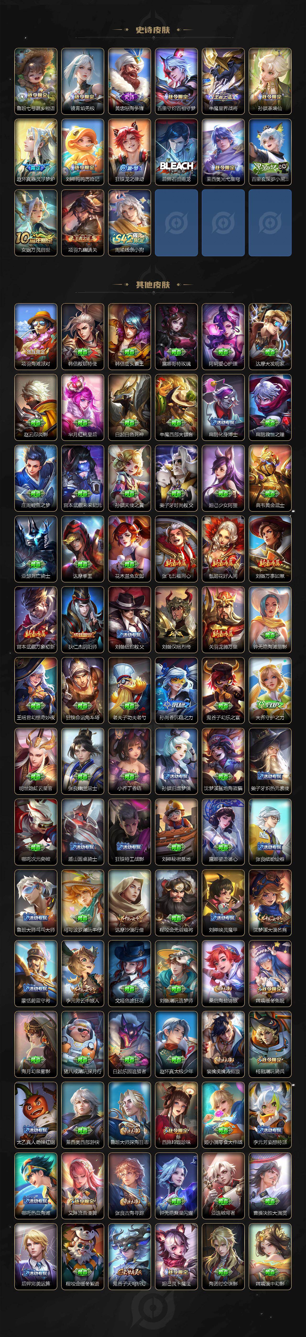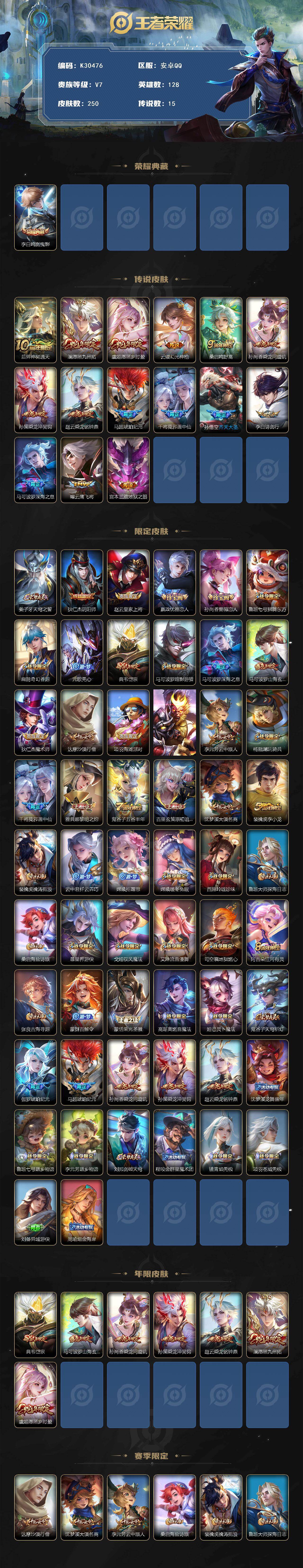 安卓Q-V7-最强王者段位-128英雄-250皮肤-1典藏皮肤-15传说-67史
