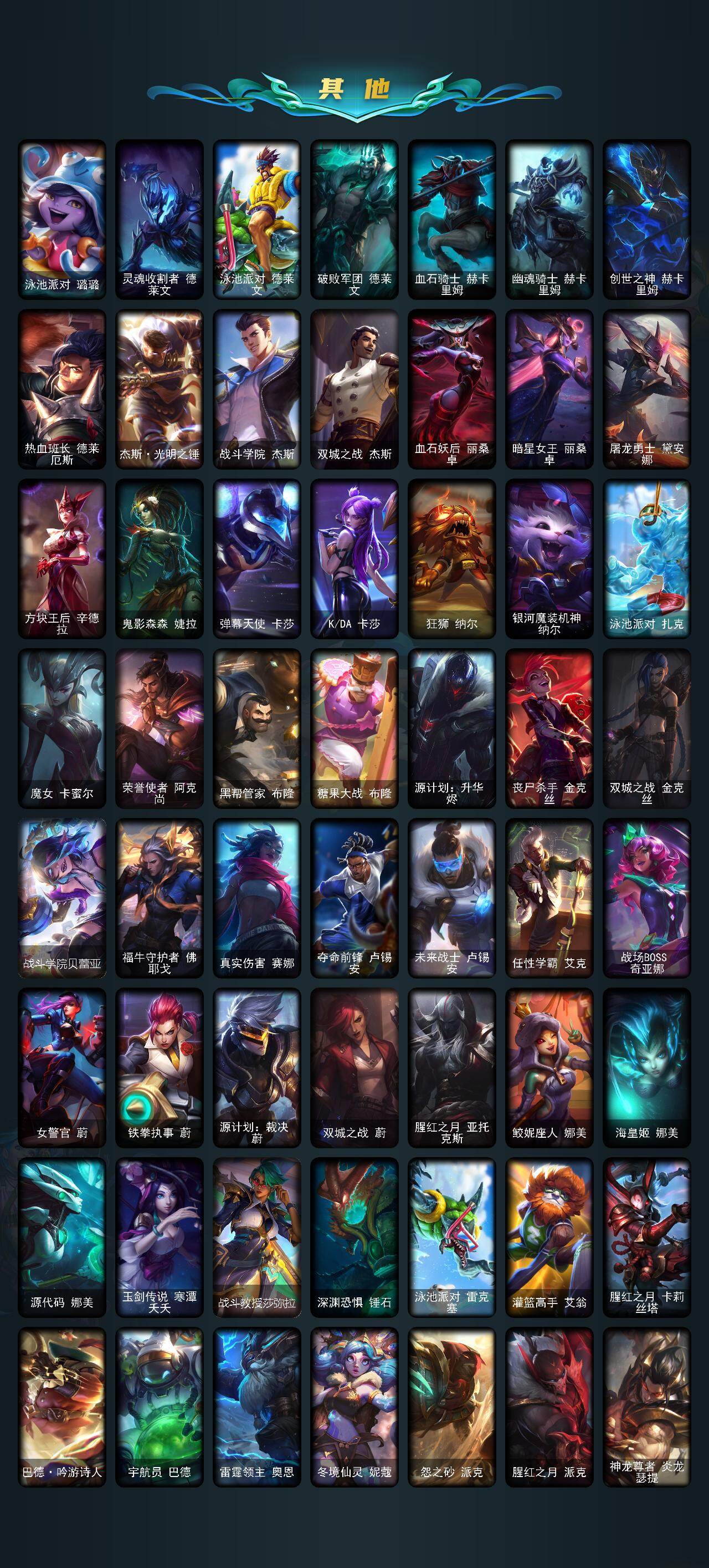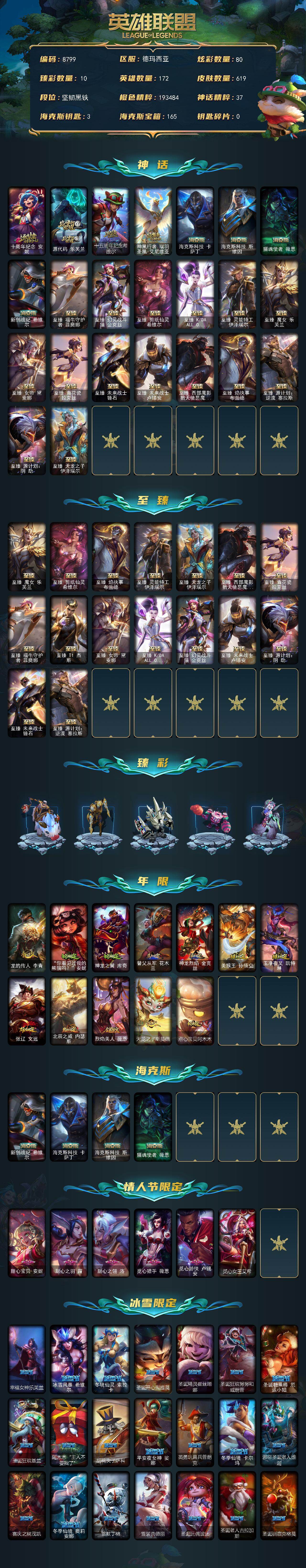 未定级段位-172英雄-619皮肤-80炫彩-1终极-24神话-119限定-58传说-153史诗