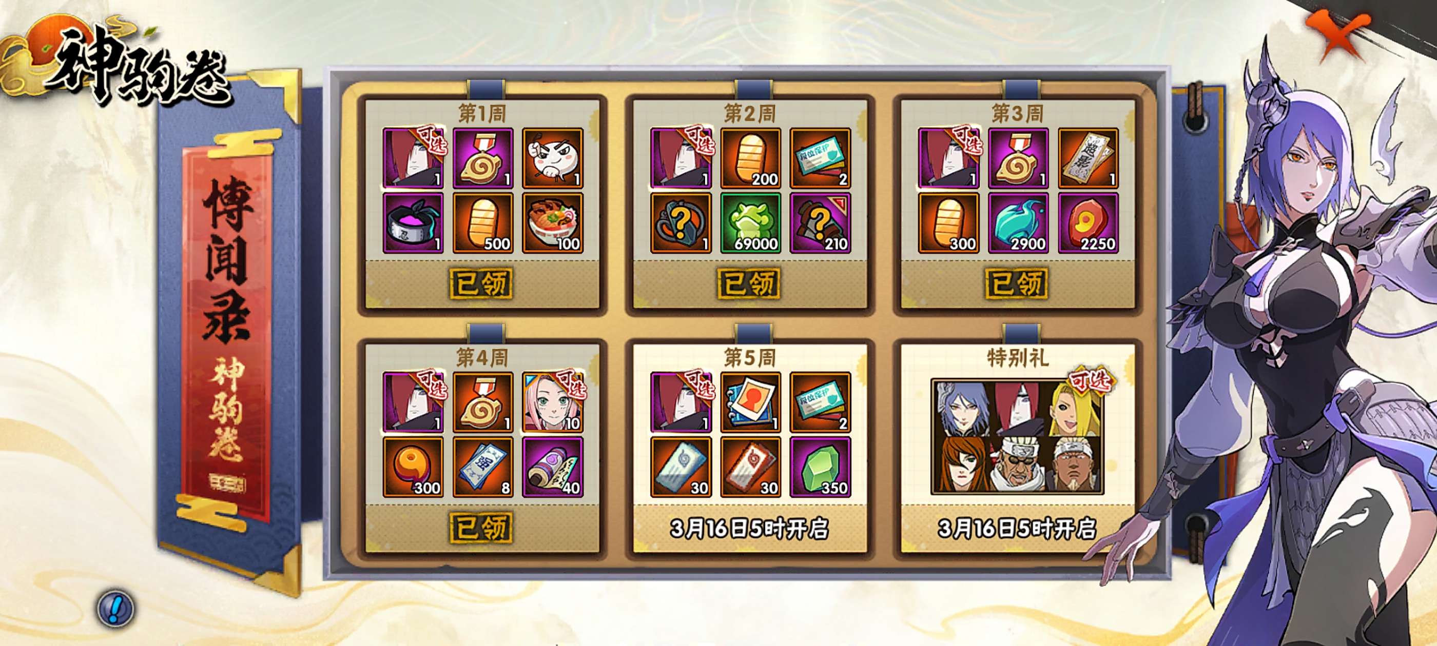 须佐佐助差12片 但金币要自己肝了 25元忍法贴 下周的博文路自选