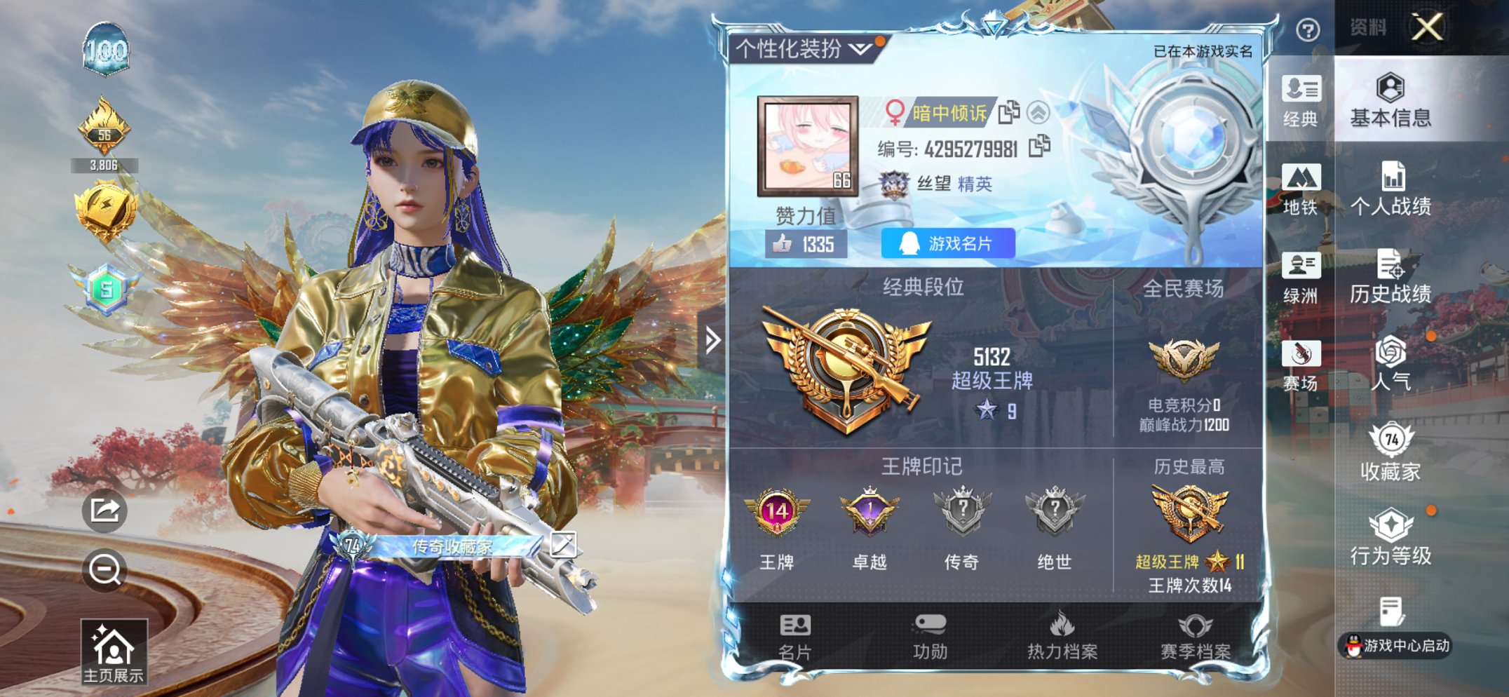 【女号14粉装12特效枪 秒换绑不用等】 苹果Q区-88193热力值-185套装-268枪皮 【1稀有】 Mark.06蓝螳螂【14粉装】 宝贝奶油派 极致幻想 星之彼岸 第五大道 白勺歌姬 呆萌星弥 小可学妹 未来歌姬 水曜玄武 角色-光极星 角色-美雪 角色-美琪 角色-烟云彩露 幻彩电音【12特效枪】 M416-心之恋语(7级) AKM-炫紫旋律(5级) Mk14-福马献瑞(3级) AUG-花中眠(3级) SCAR-L-锦绣绵绵(5级) DP-28-圣堂之誓(5级) 汤姆逊-怪笑疯兔(7级