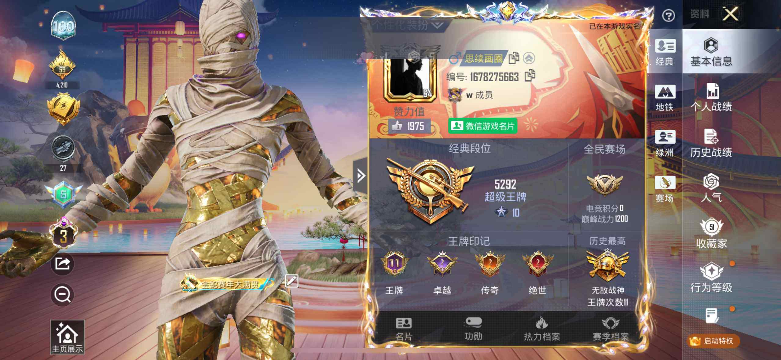【AZH3081】苹果 微信【无敌战神框 三级图卡盟】无敌战神框-1神装-1粉装-6特效枪-0载具-6粉色飞行器-39811热力值-11王牌印记-92套装-128枪皮