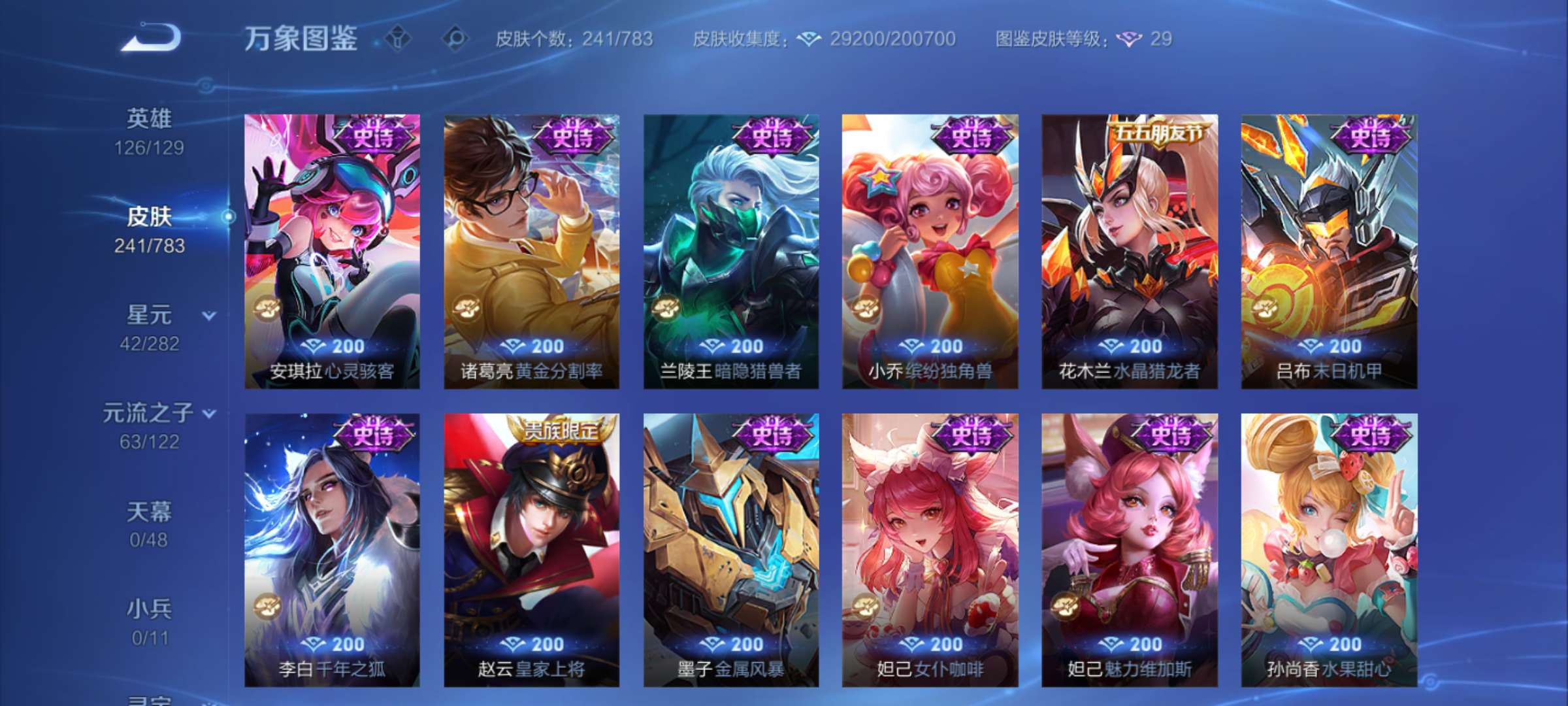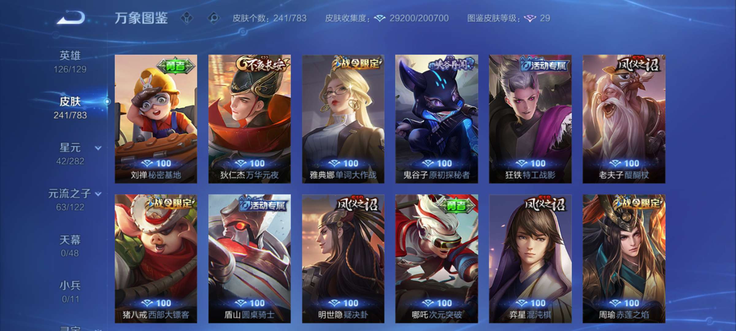 皮肤多英雄多,性价比高,澜李信年限皮,典藏皮都有,可以来瞧一瞧看一看
