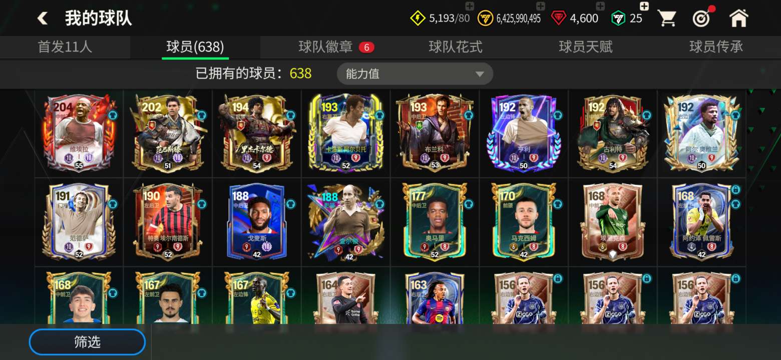 1个148,7个147,4个145,3个10阶,其余全部9阶,天赋超高,特训50+,除了查尔顿全部卡