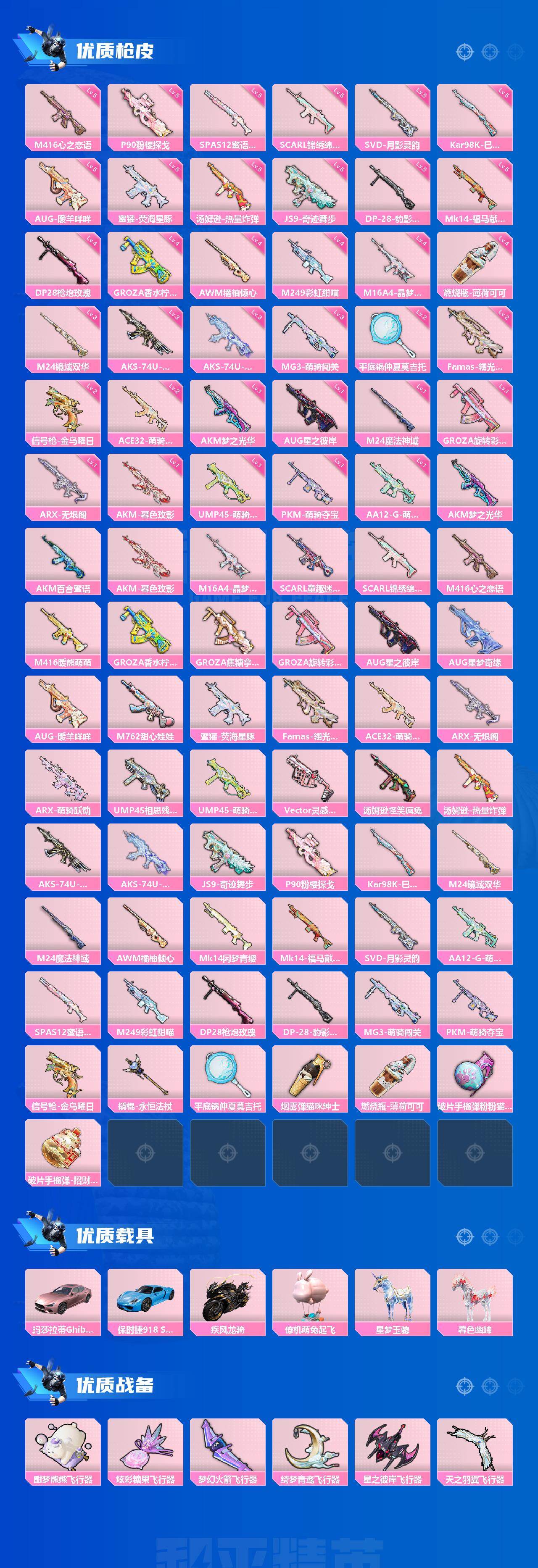 苹果 手Q-2神装-52粉装-50特效枪-5载具-16粉色飞行器-201674热力值-17王牌印记-354套装-507枪皮