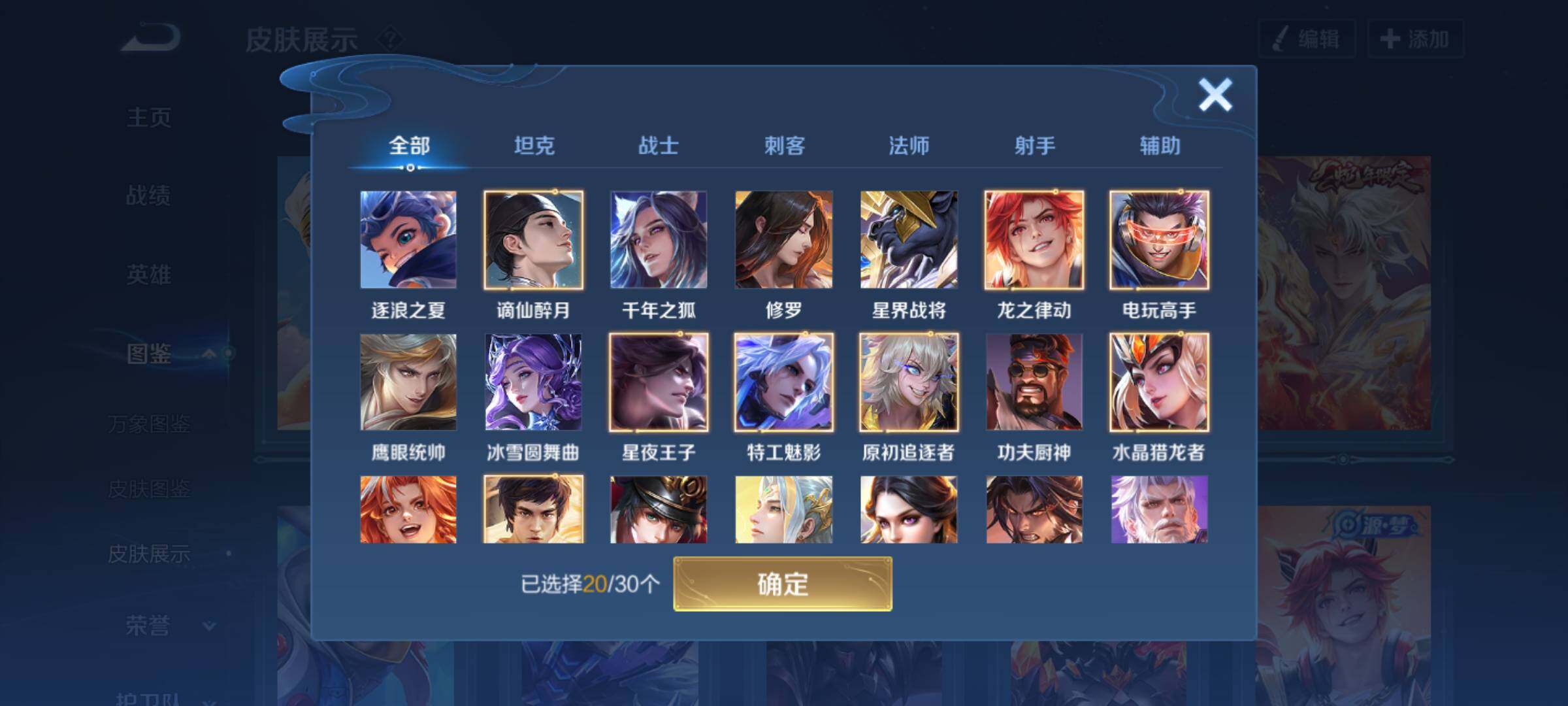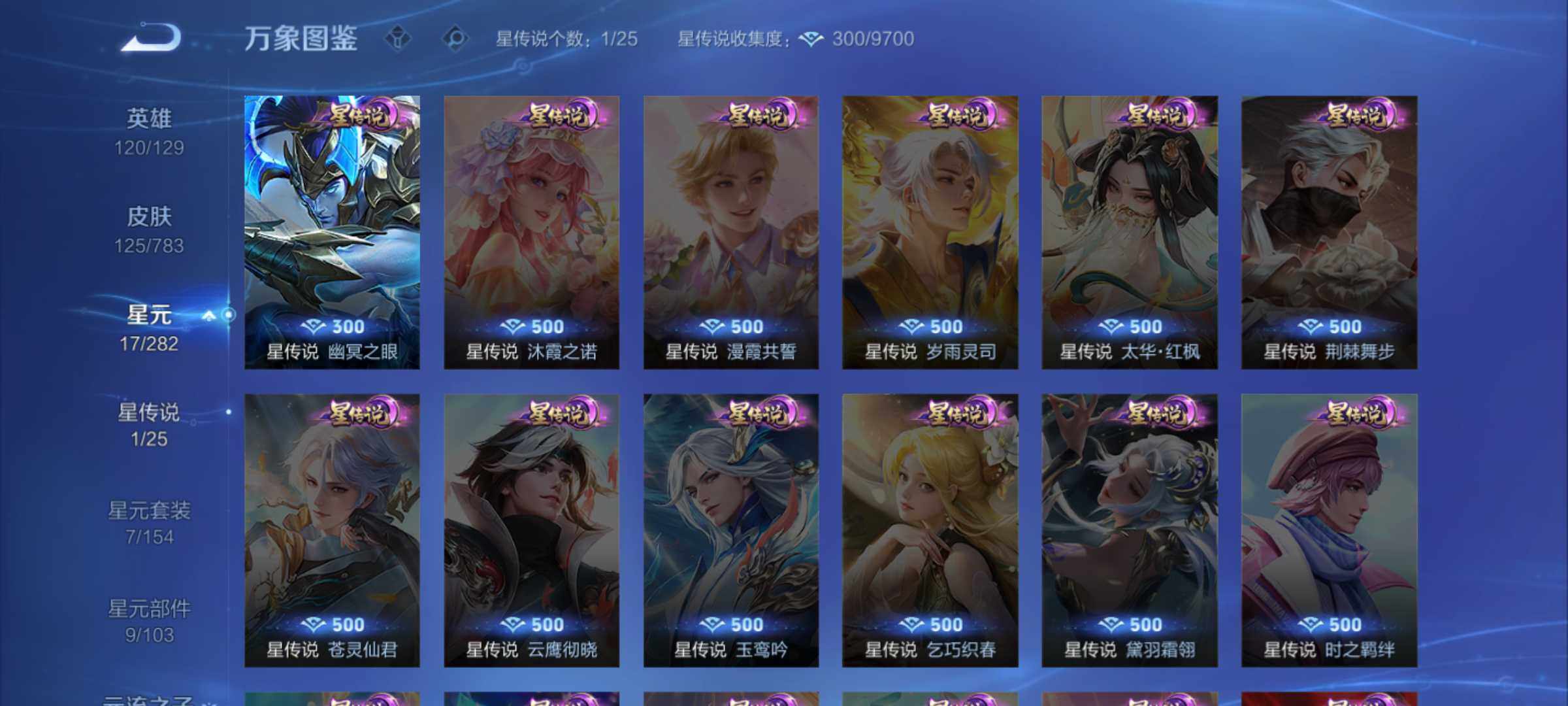 【限定皮肤】:姜子牙天穹之誓,李白谪仙醉月,狄仁杰阴阳师,赵云皇家上将,孙尚香蔷薇恋人,项羽海滩派对,王昭君午后时光,李元芳云中旅人,百里玄策原初追逐者,沈梦溪大漠