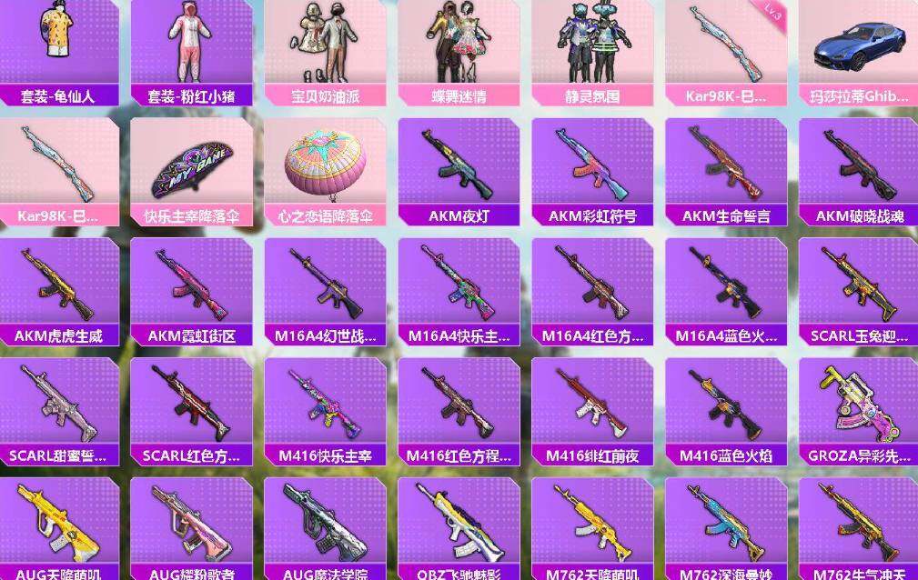 苹果 手Q-3粉装-1特效枪-1载具-0粉色飞行器-31072热力值-5王牌印记-95套装-105枪皮