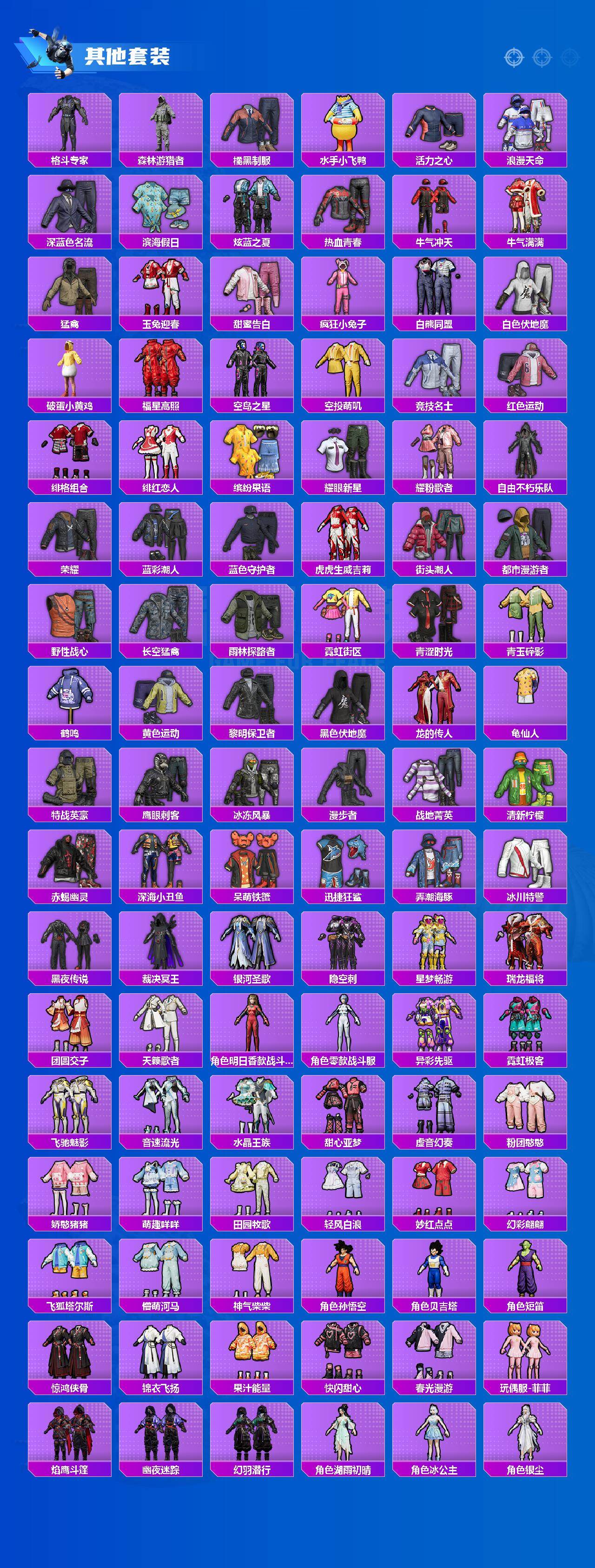 【粉色套装】:粉装-怪诞乔克,粉装-星之信仰,粉装-放客神游,角色-洛天依,角色-初号机款机体服,角色-呆萌星弥,角色-小可学妹,玩偶服-猪猪