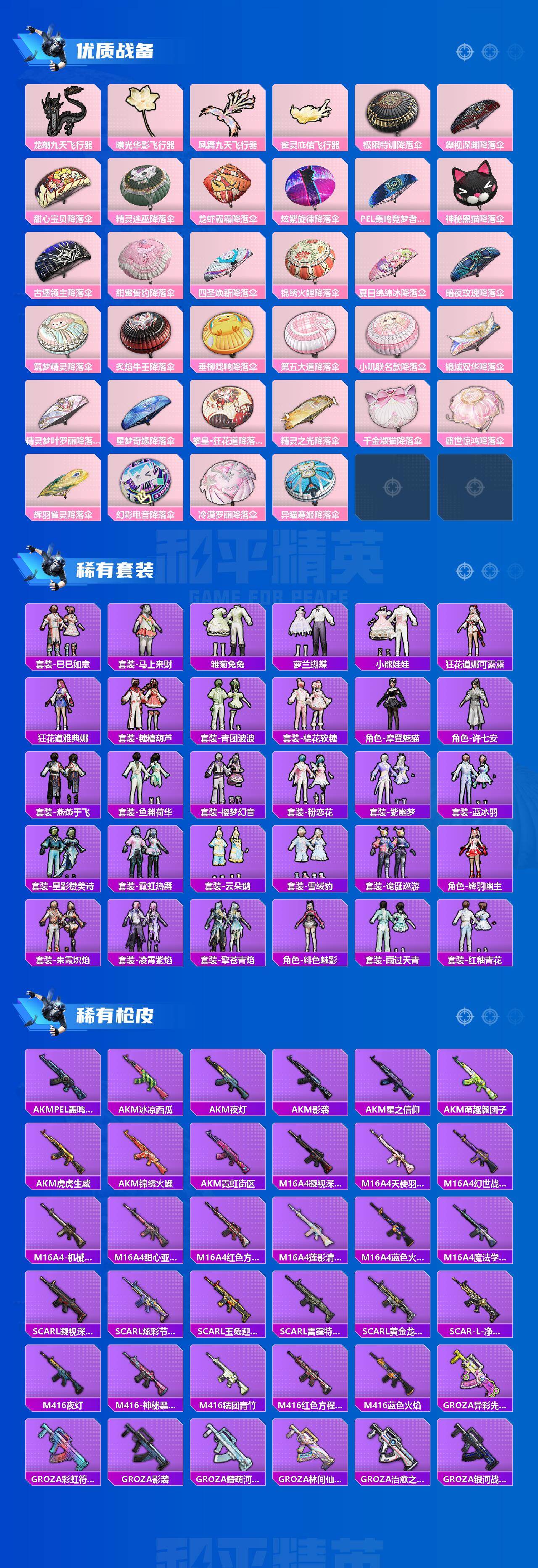【HP2119】330套装/枪械20/装备570/载具3/战备269/王牌印记6/热力值159460/五级AKM-绿萝繁花/六级SCAR-L-纯梦嫁纱/六级M416-五爪金龙/三级M416-墨龙九天/三级GROZA-精灵之光/五级AUG-暖羊咩咩/七级M762-甜蜜誓约/三级UMP45-宇宙意志/四级Kar98K-伏魔团/五级Kar98K-巳巳如意/三级M24-镜域双华/五级AWM-橘柚倾心/三级Mk14-盛世惊鸿/一级Mk14-福马献瑞/四级DP-28-豹影疾电/一级MG3-洛神天依/三级MG
