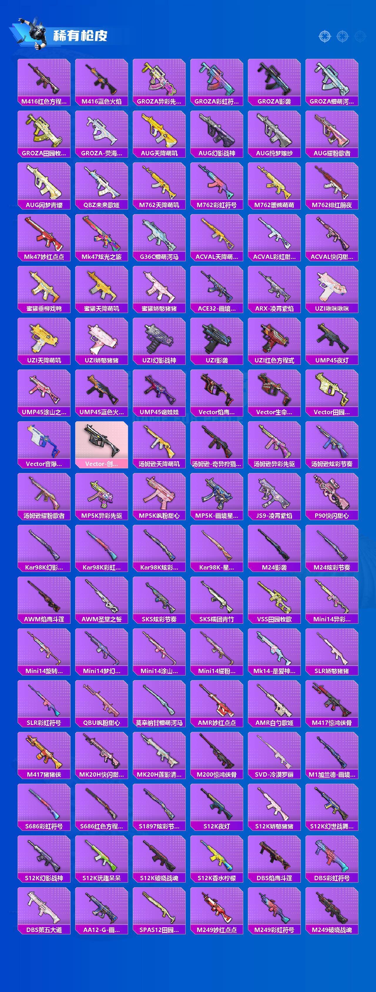 【粉色枪皮等级】:SCAR-L-锦绣绵绵(五级),M762-甜蜜誓约(七级)